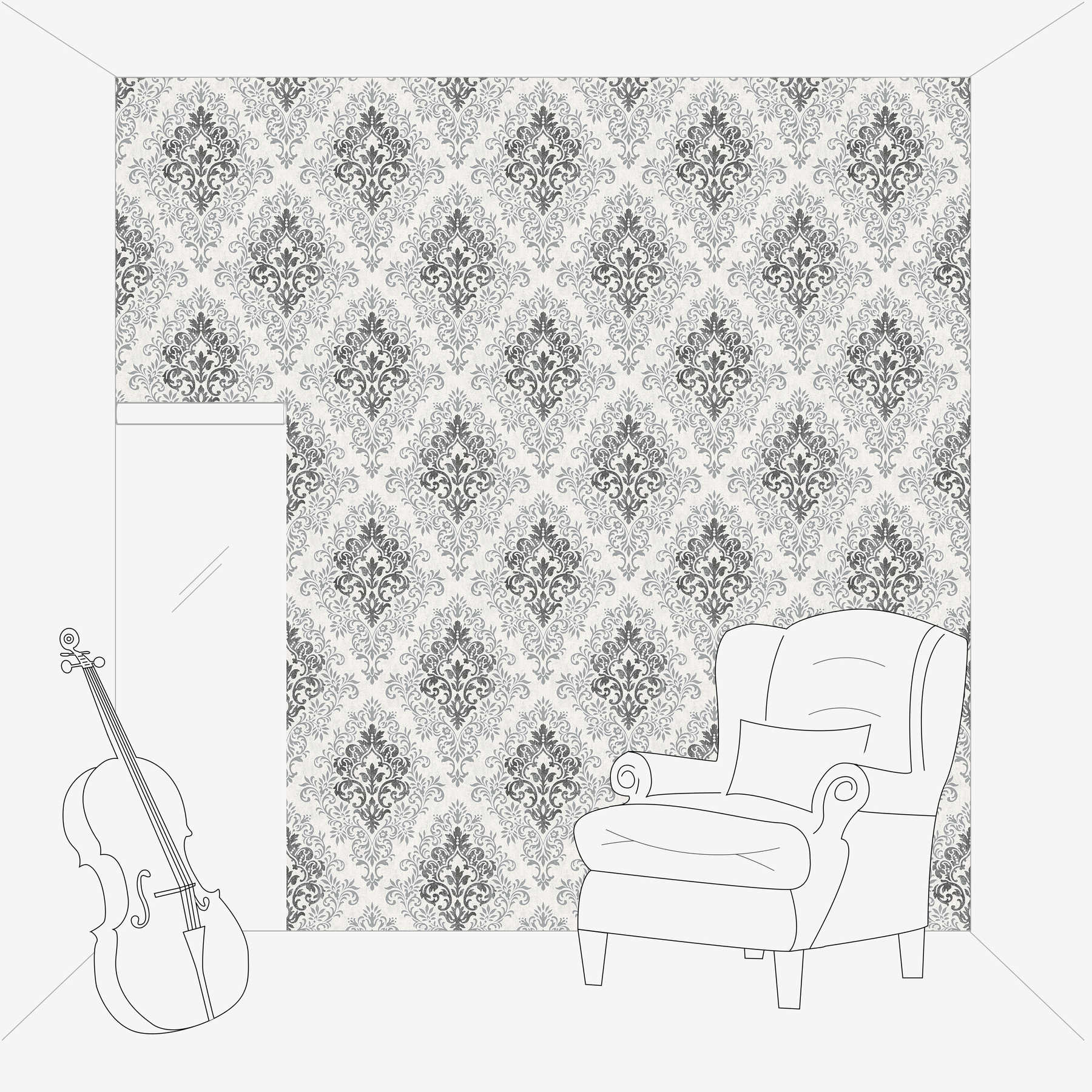 Barock Tapete mit Metallic-Ornamenten – Grau