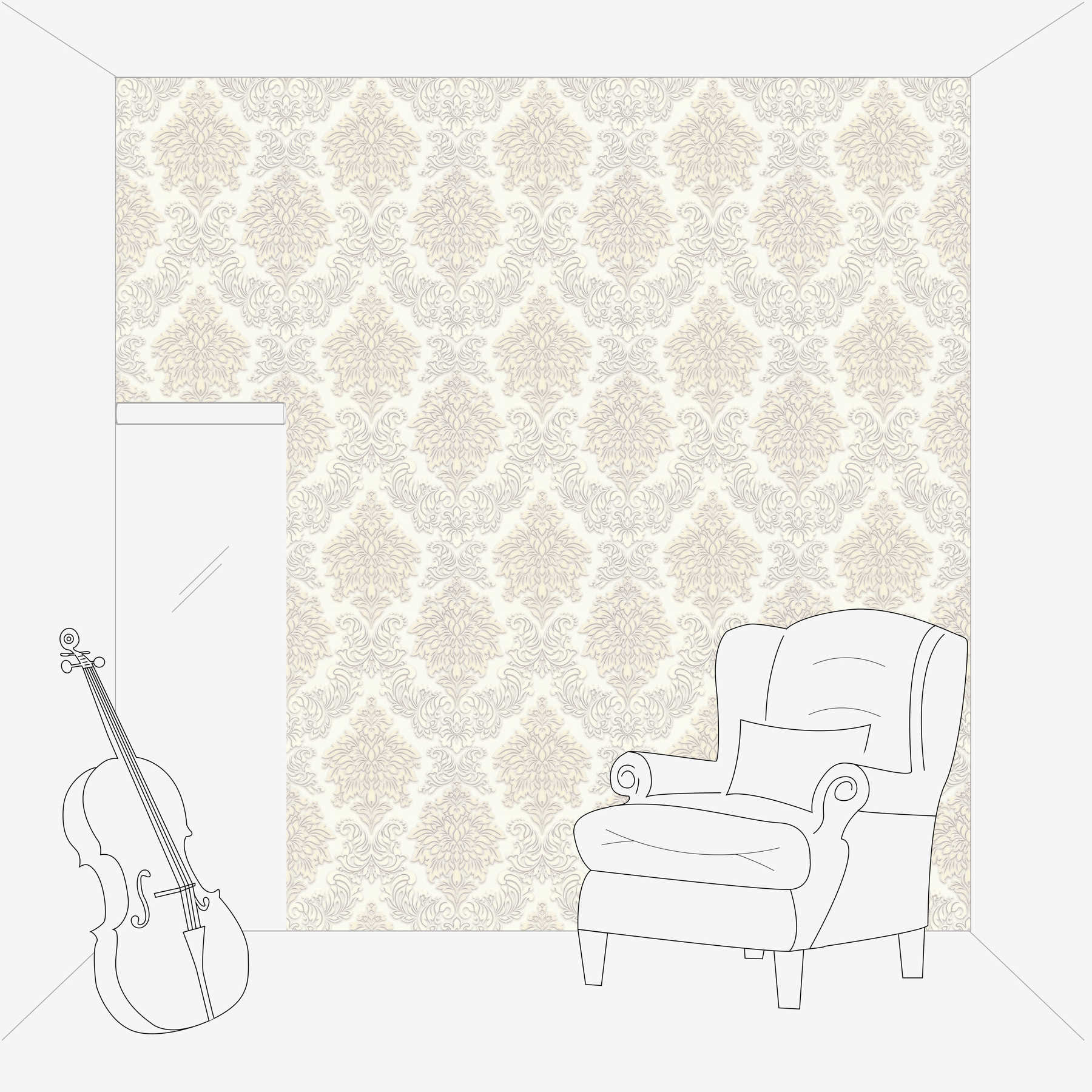 Barock Tapete Ornamente mit Glitzereffekt – Weiß, Silber, Beige
