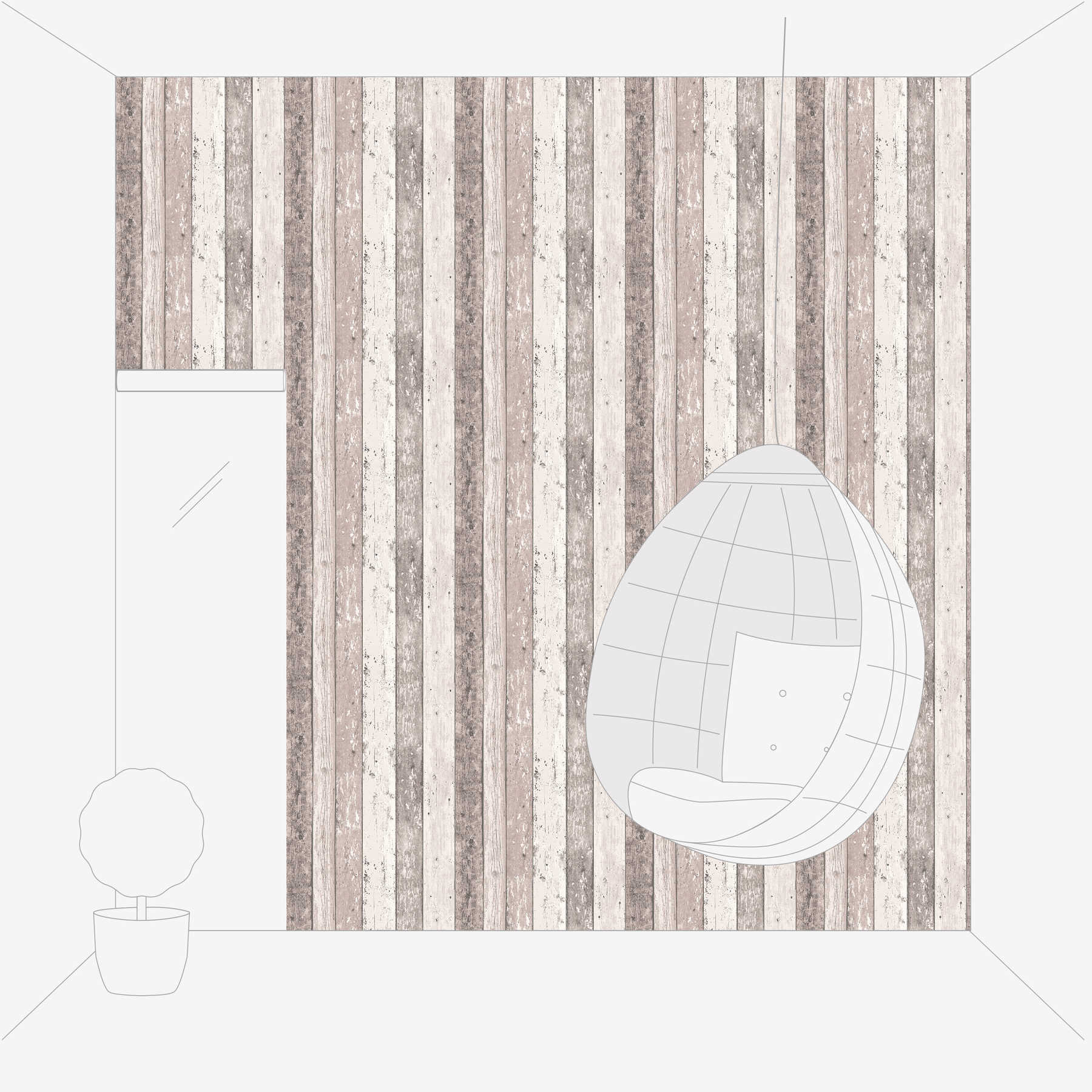 Bretter-Tapete mit Holzoptik im Used-Look – Braun, Creme