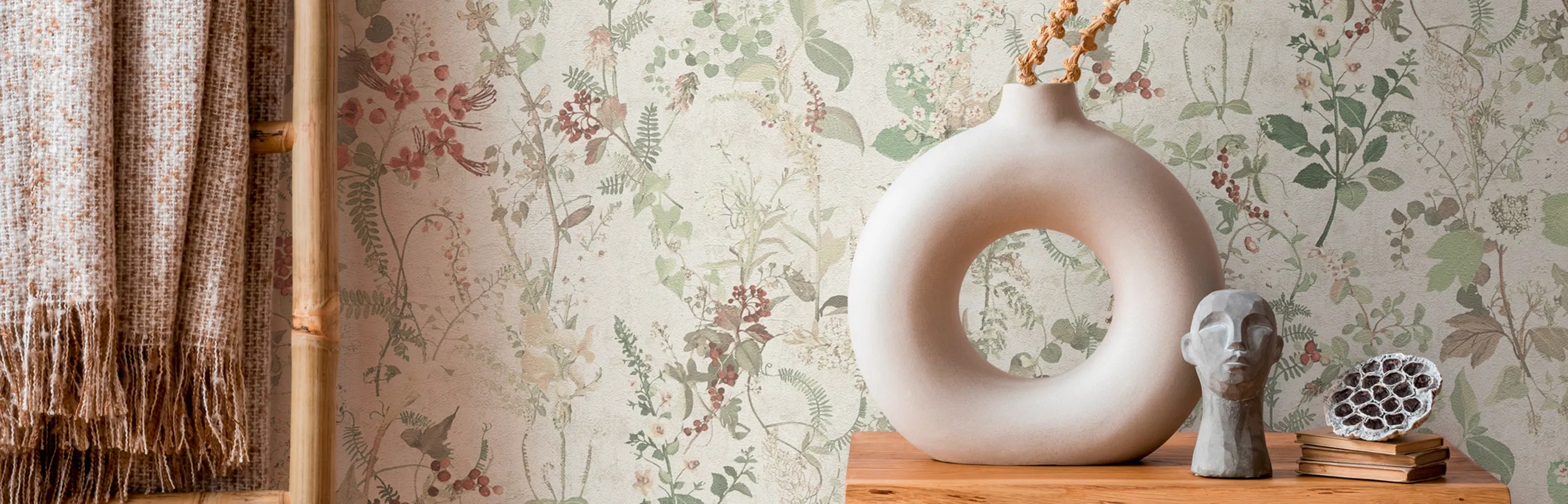 Blüten Bordüre selbstklebend mit Natur Design – Creme, Beige
