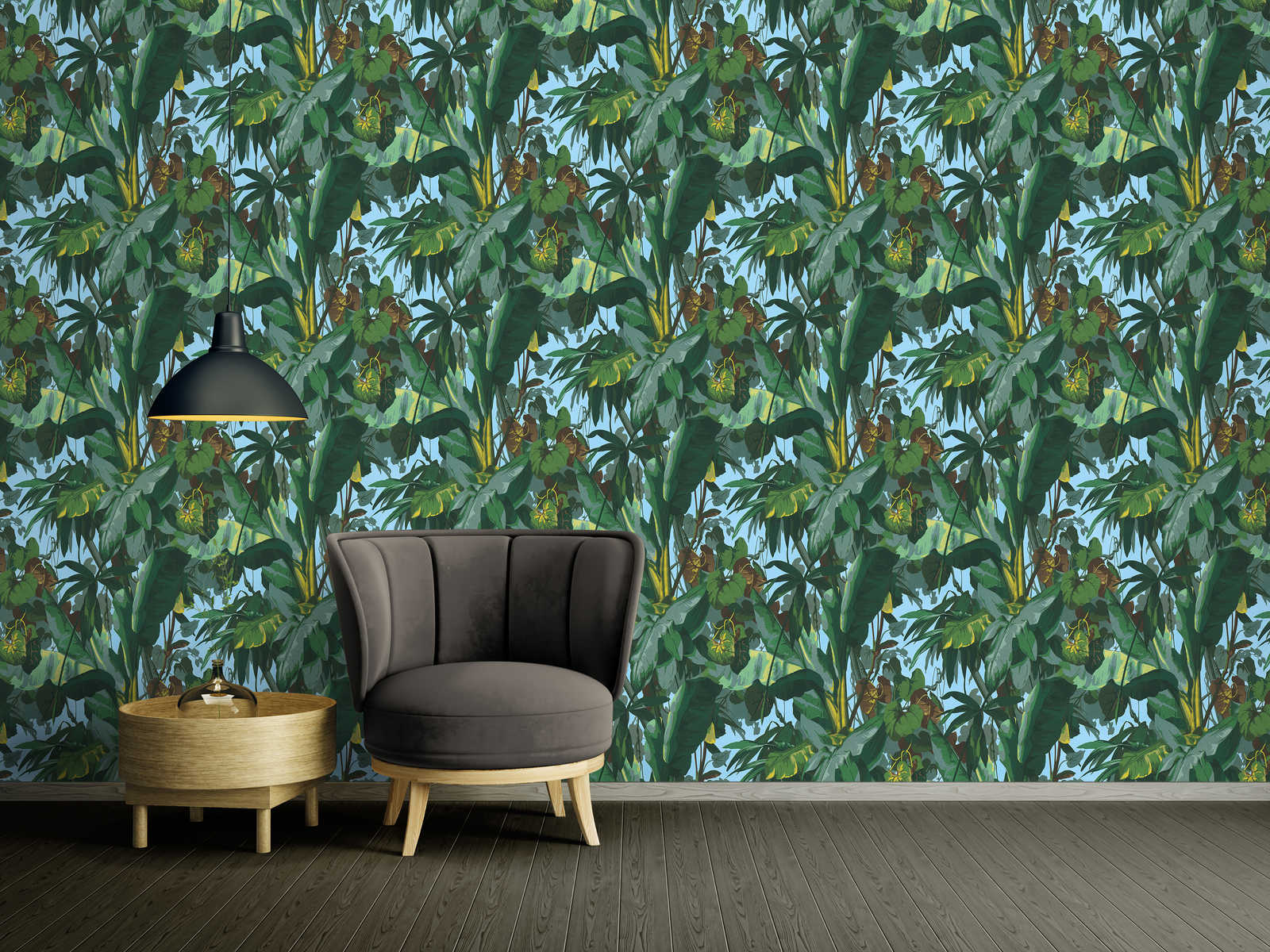 Selbstklebende Tapete | Dschungeltapete mit Blätterwald – Grün, Blau, Gelb