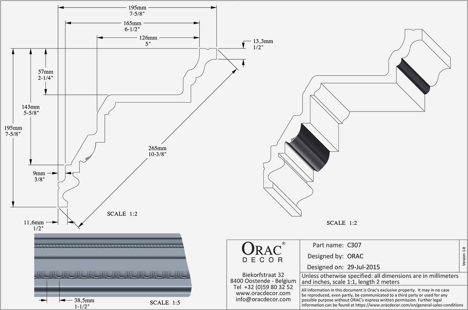 Eine unserer umfangreichsten und traditionellsten Friesleisten steht dir zur Verfügung. Du kannst diese Leiste mit dem passenden Zierblock (C307A) kombinieren, um einen eleganten und königlichen Look zu erzielen. Ein Montagehinweis für dich: Nutze unseren extrem starken DecoFix Power für schwere Kranzleisten, indirekte Beleuchtung, Vorhangprofile oder 3D-Wandverkleidungspaneele.