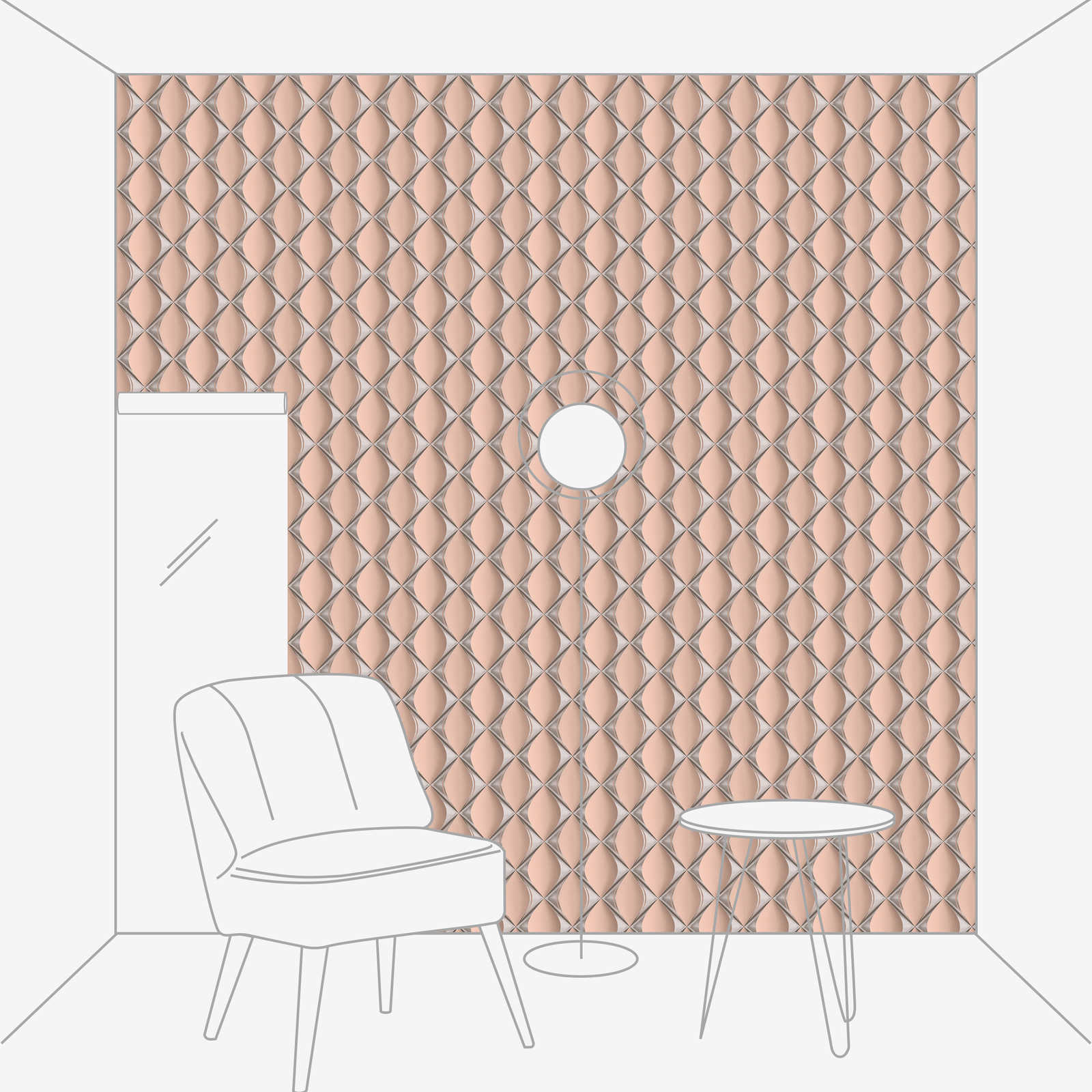 Design Tapete 3D mit Metallic Rauten Muster – Rosa, Metallic