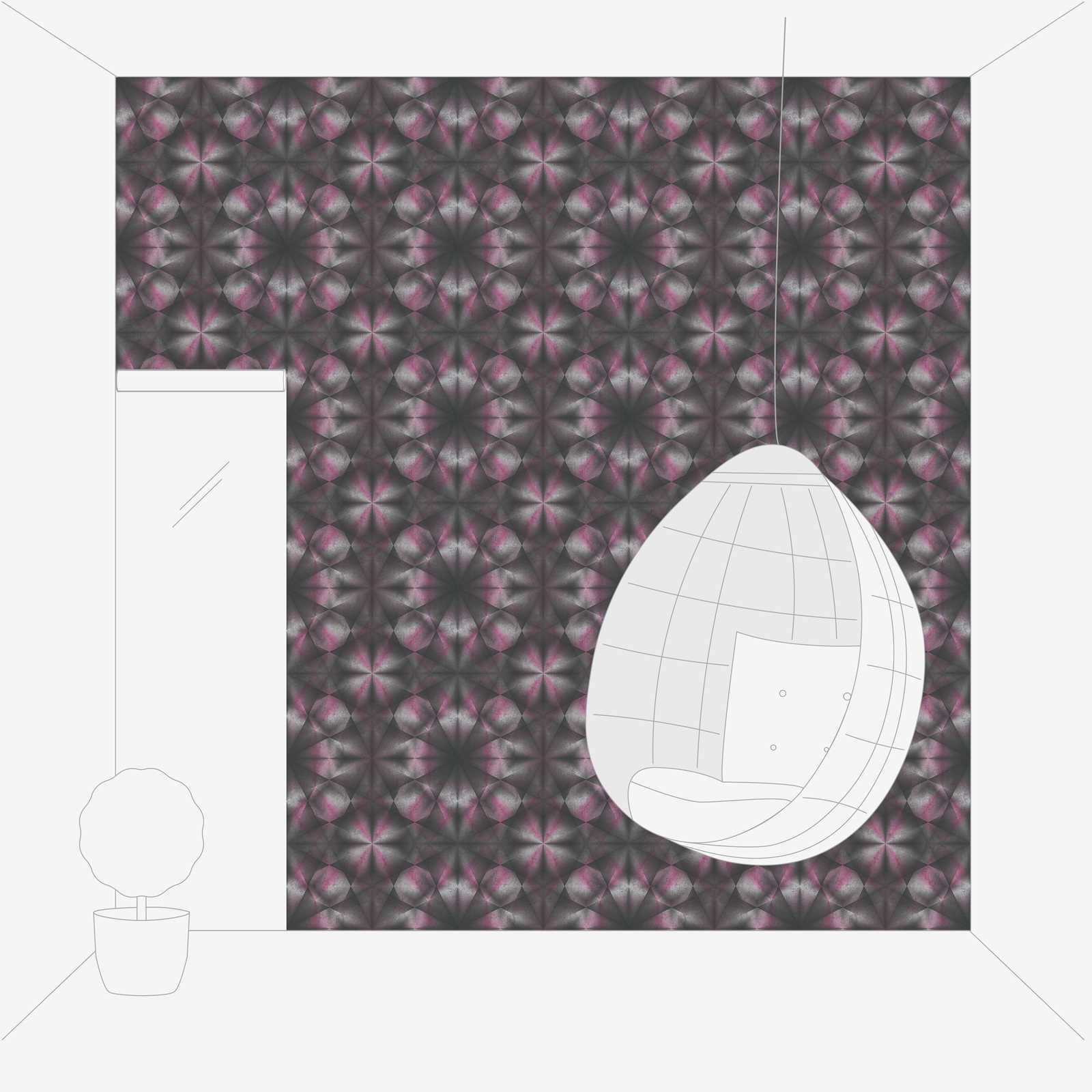 Design Tapete mit Betonoptik & Grafikmuster – Lila, Grau, Schwarz