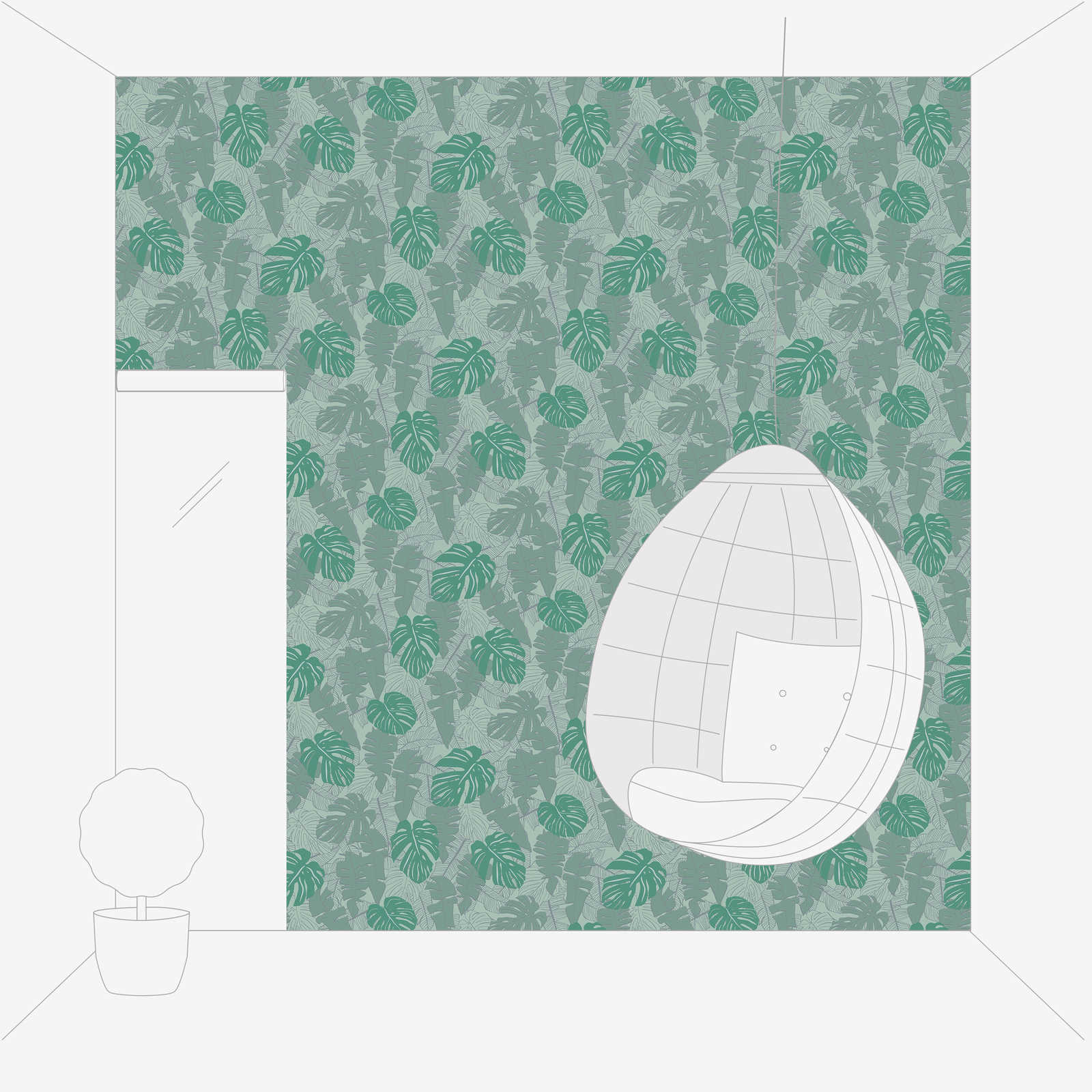 Dschungeltapete mit glänzendem Muster – Grün, Metallic