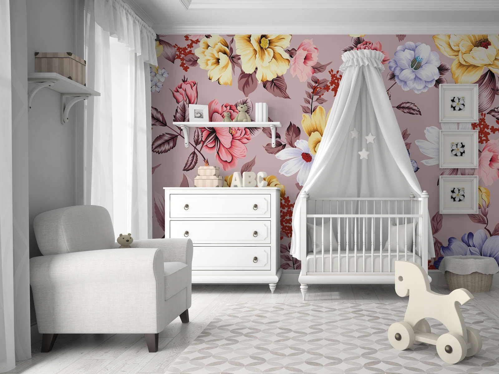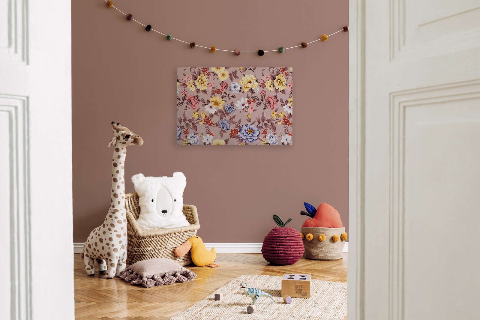 Leinwand floral mit Blüten und Blättern – 90 cm x 60 cm