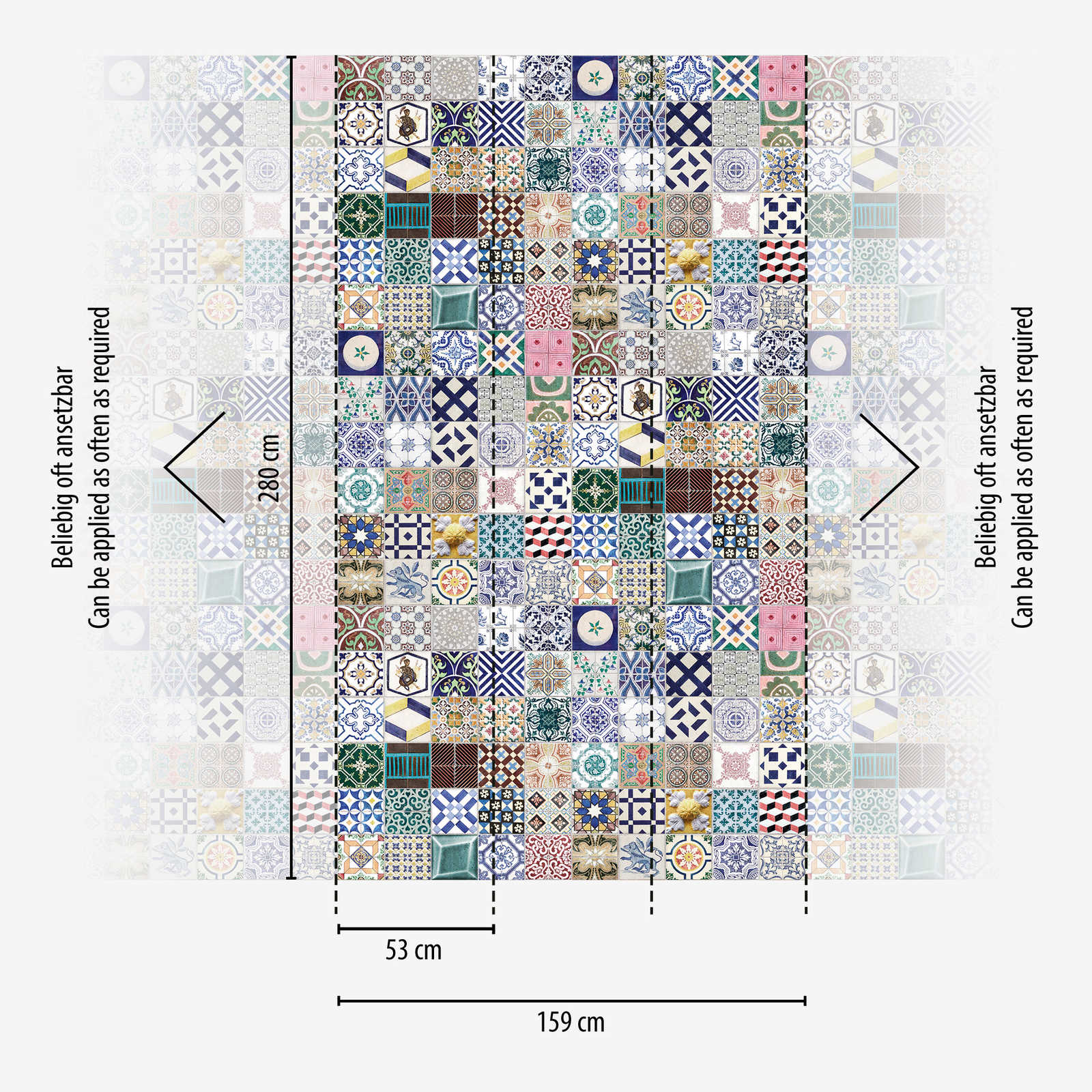 Farbenfrohe Mosaikfliesen Vliestapete und einer großflächigen Musterwiederholung – Bunt, Blau, Grün