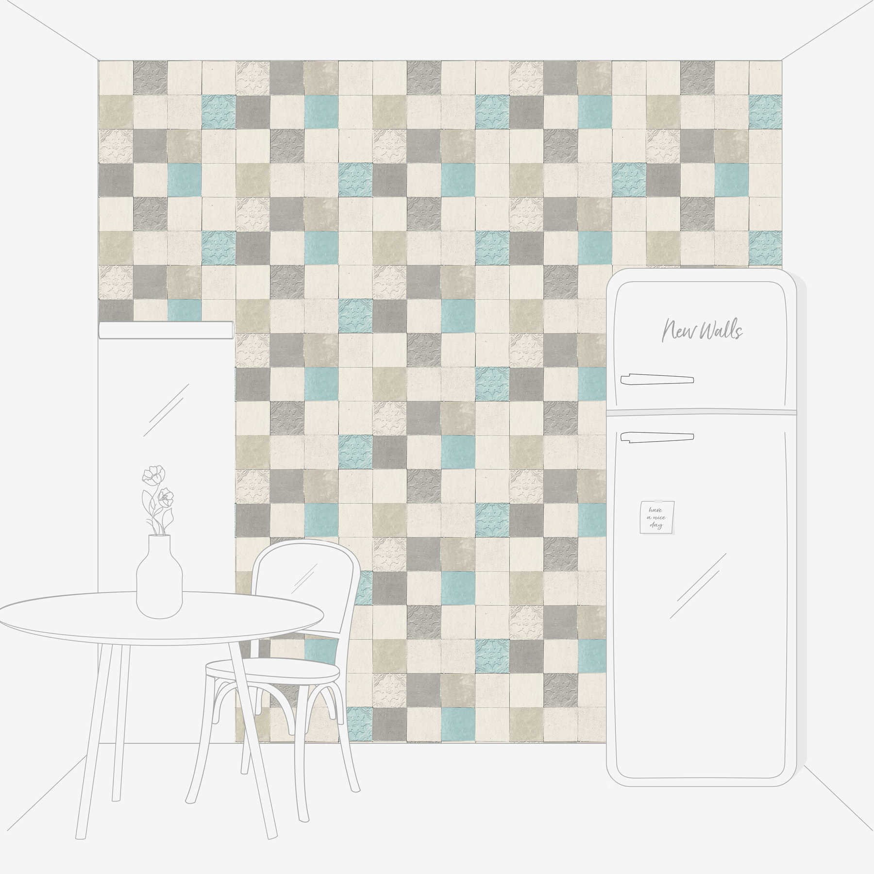 Fliesen-Tapete Dekorfliesen Mosaik – Grau, Blau, Creme
