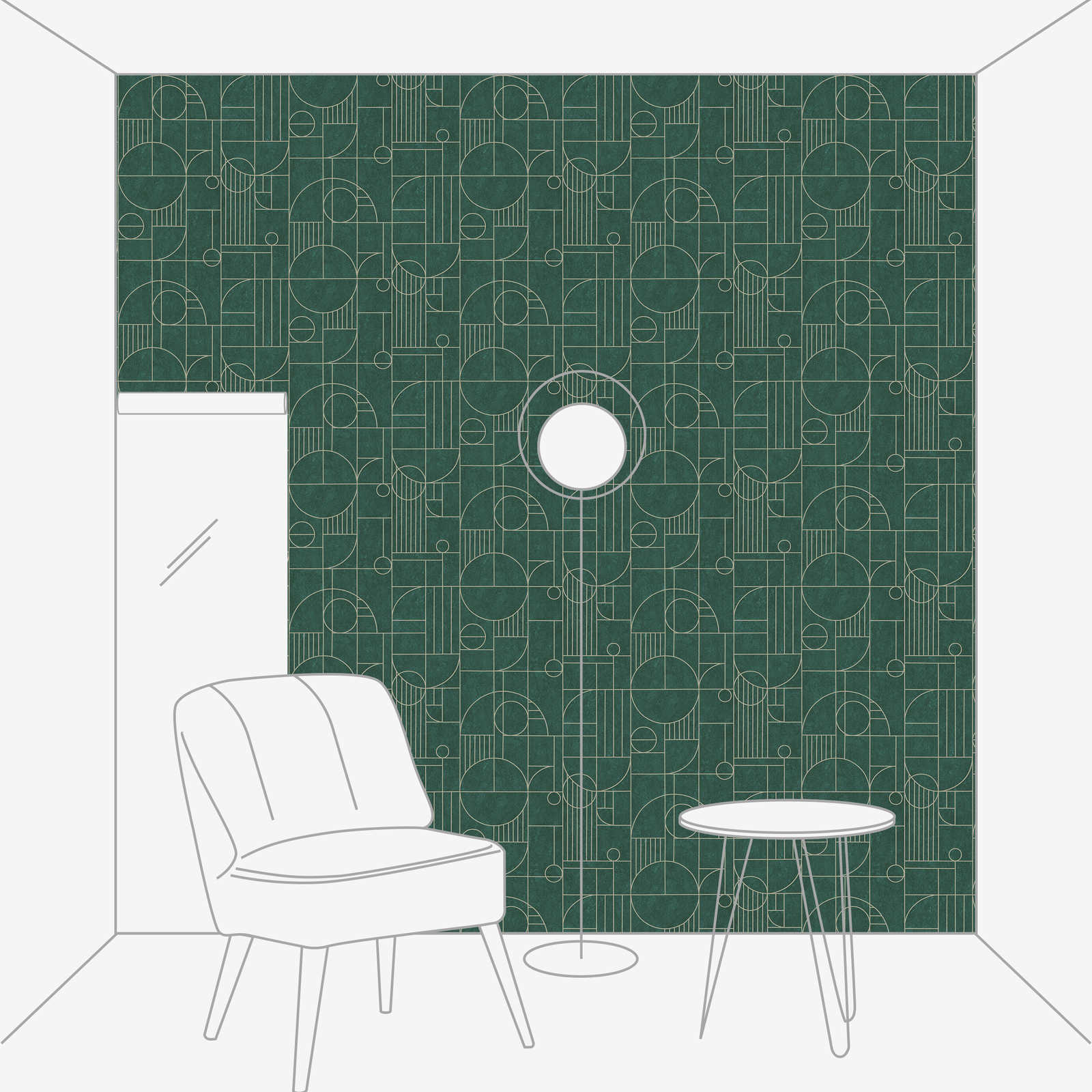 Fliesenoptik Tapete Art Deco Design marmoriert – Grün, Metallic