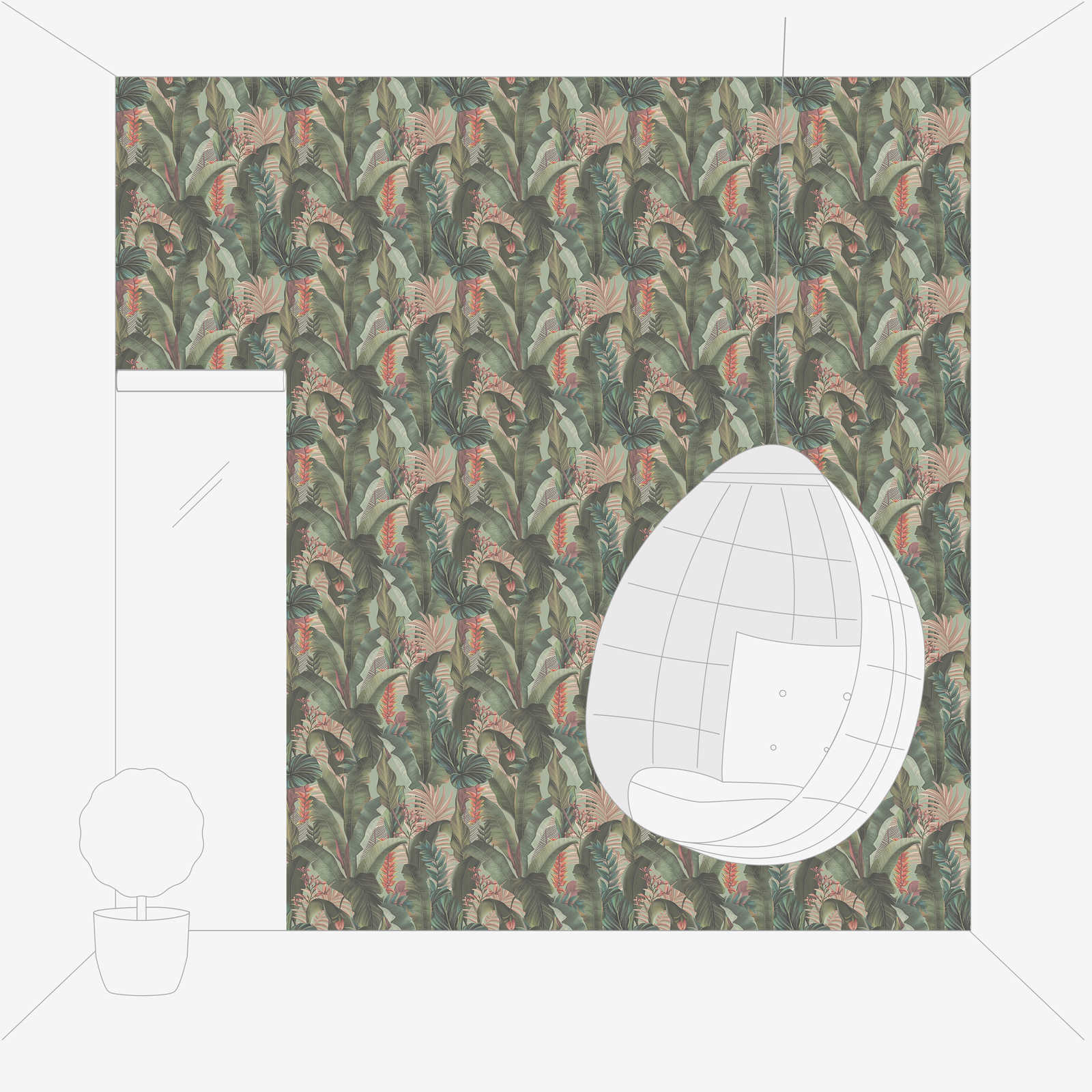 Florale Dschungeltapete mit Palmenblättern & Blüten strukturiert matt – Grün, Rosa, Rot