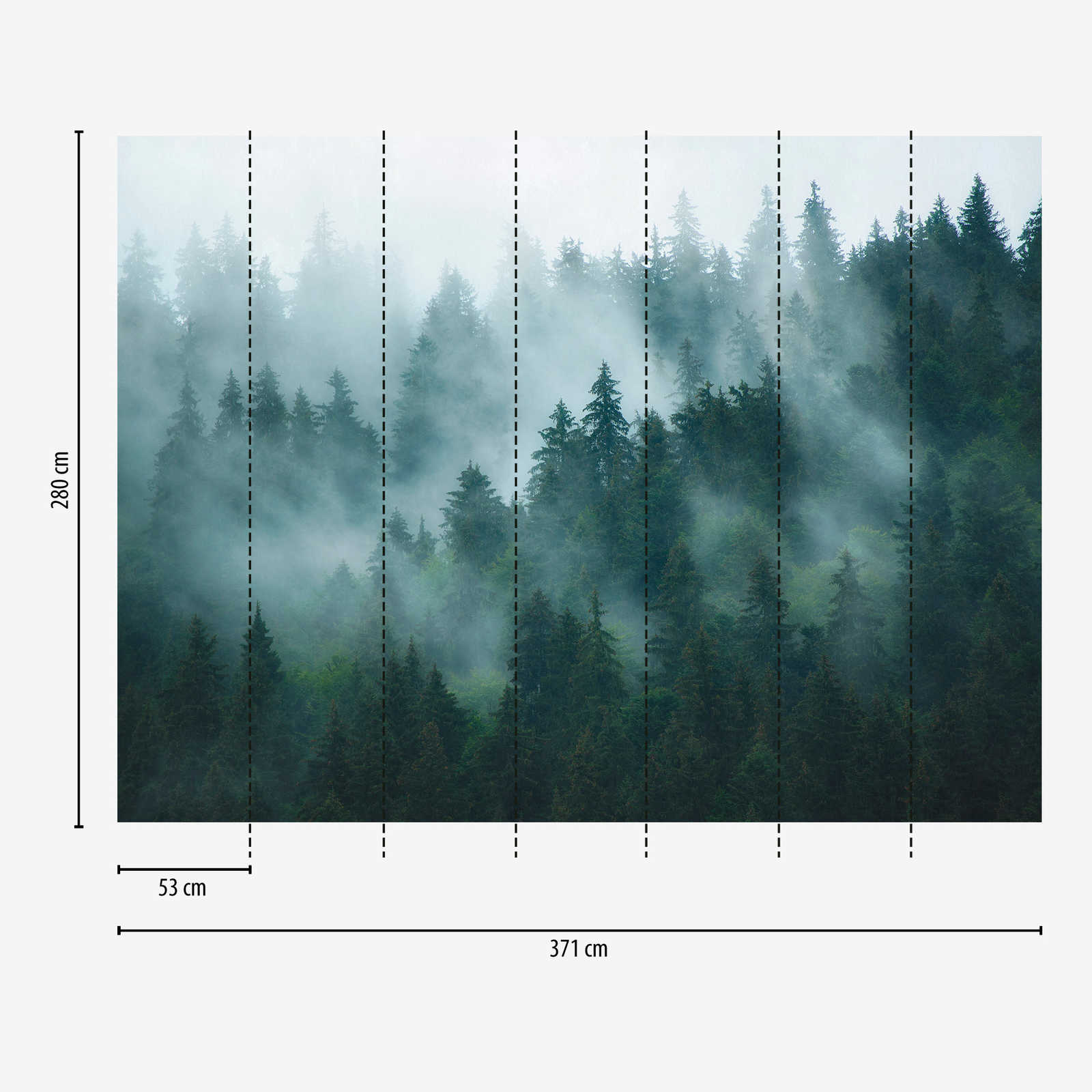 Fototapete mit mystischer Nebel-Waldlandschaft als Vliestapete – Grün, Blau, Petrol