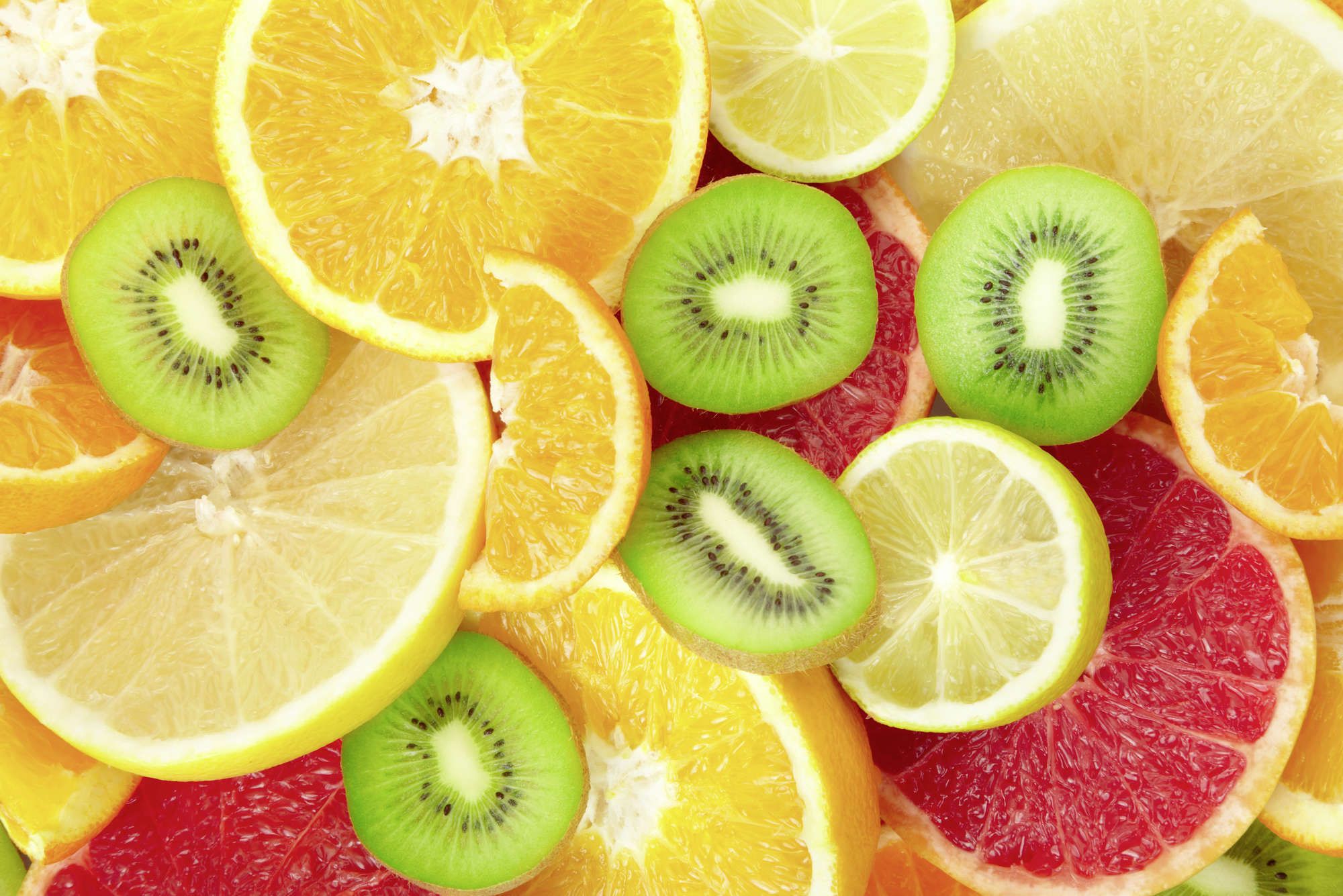 Fototapete frisches Obst und Wasser – Bunt, Gelb, Rot