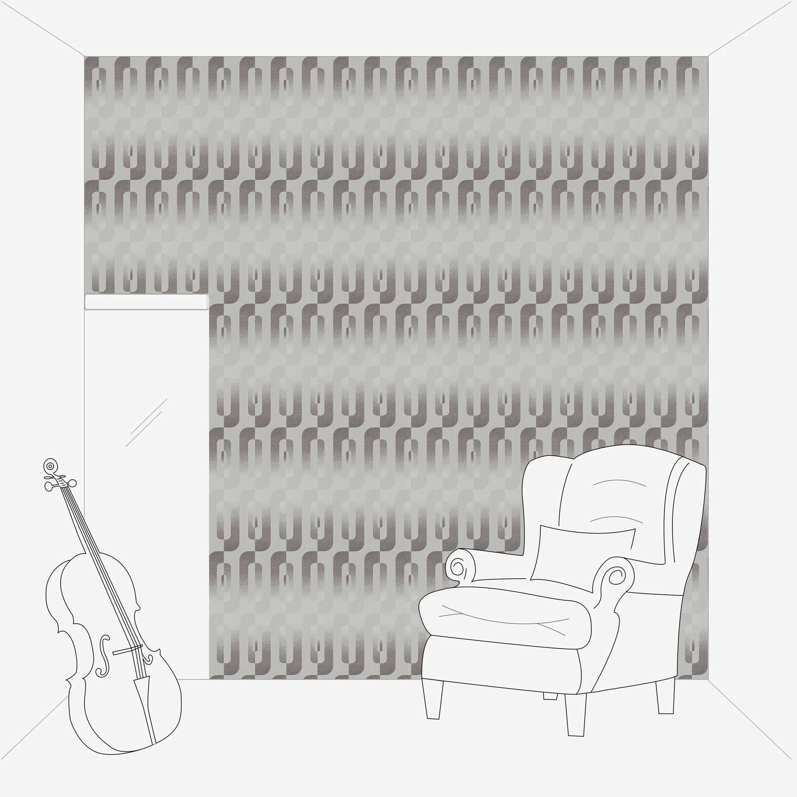 Grafik-Tapete mit Reto Muster in Grau und Silber