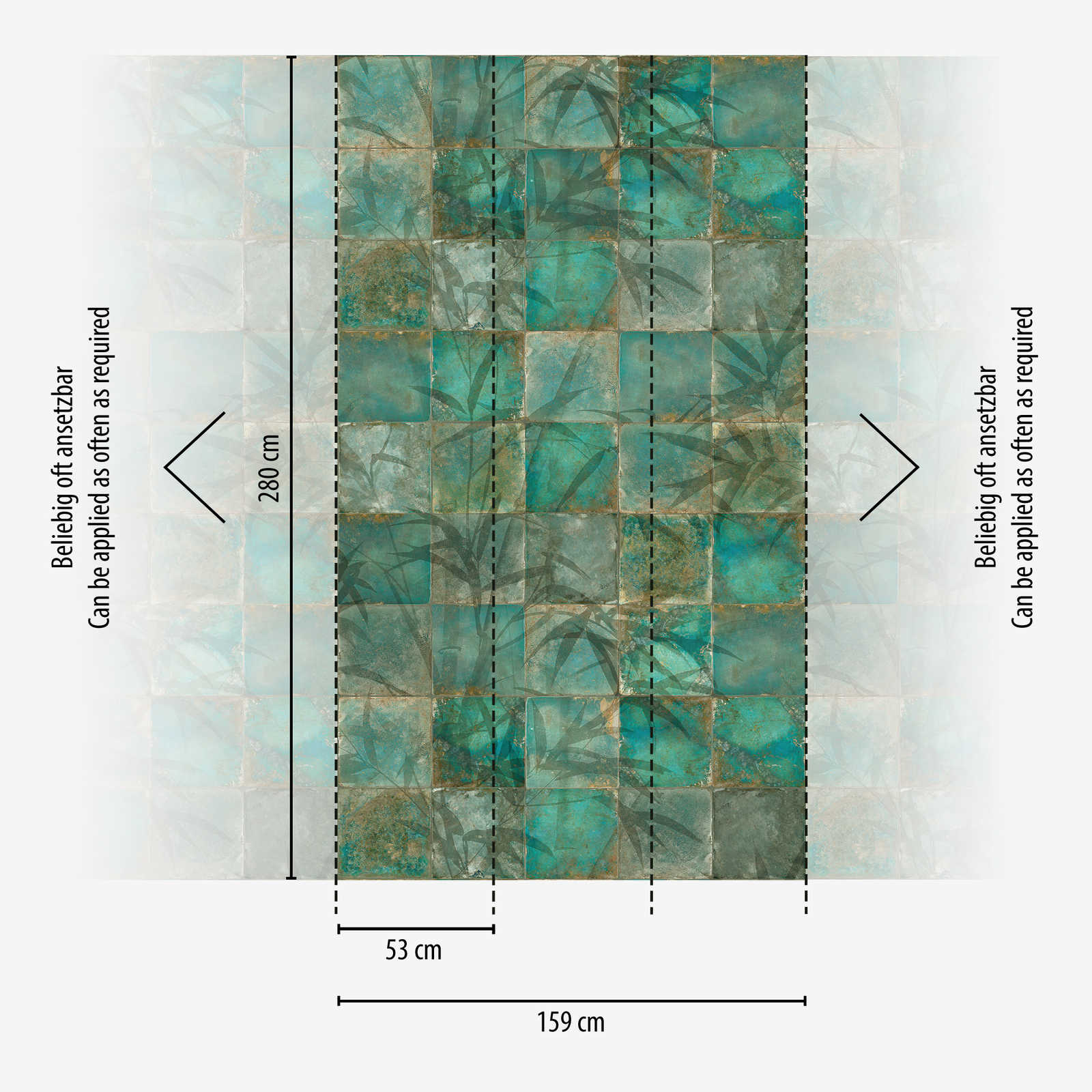 Grüne Vliestapete mit Blatt Mosaikmuster in Fliesenoptik – Grün