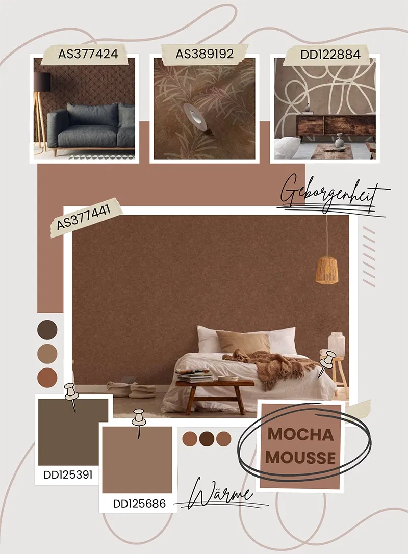 Mocha Mousse ist mehr als nur eine Trendfarbe - sie verkörpert Wärme, Ruhe und zeitlose Eleganz. Ihre vielseitige Kombinierbarkeit macht sie zur idealen Wahl für jeden Raum, egal ob gemütliches Wohnzimmer, stilvolles Schlafzimmer oder einladender Essbereich. Durch die harmonische Verbindung von sanften Brauntönen und dezentem Beige schafft sie eine wohnliche Atmosphäre, die sowohl modern als auch klassisch interpretiert werden kann.
