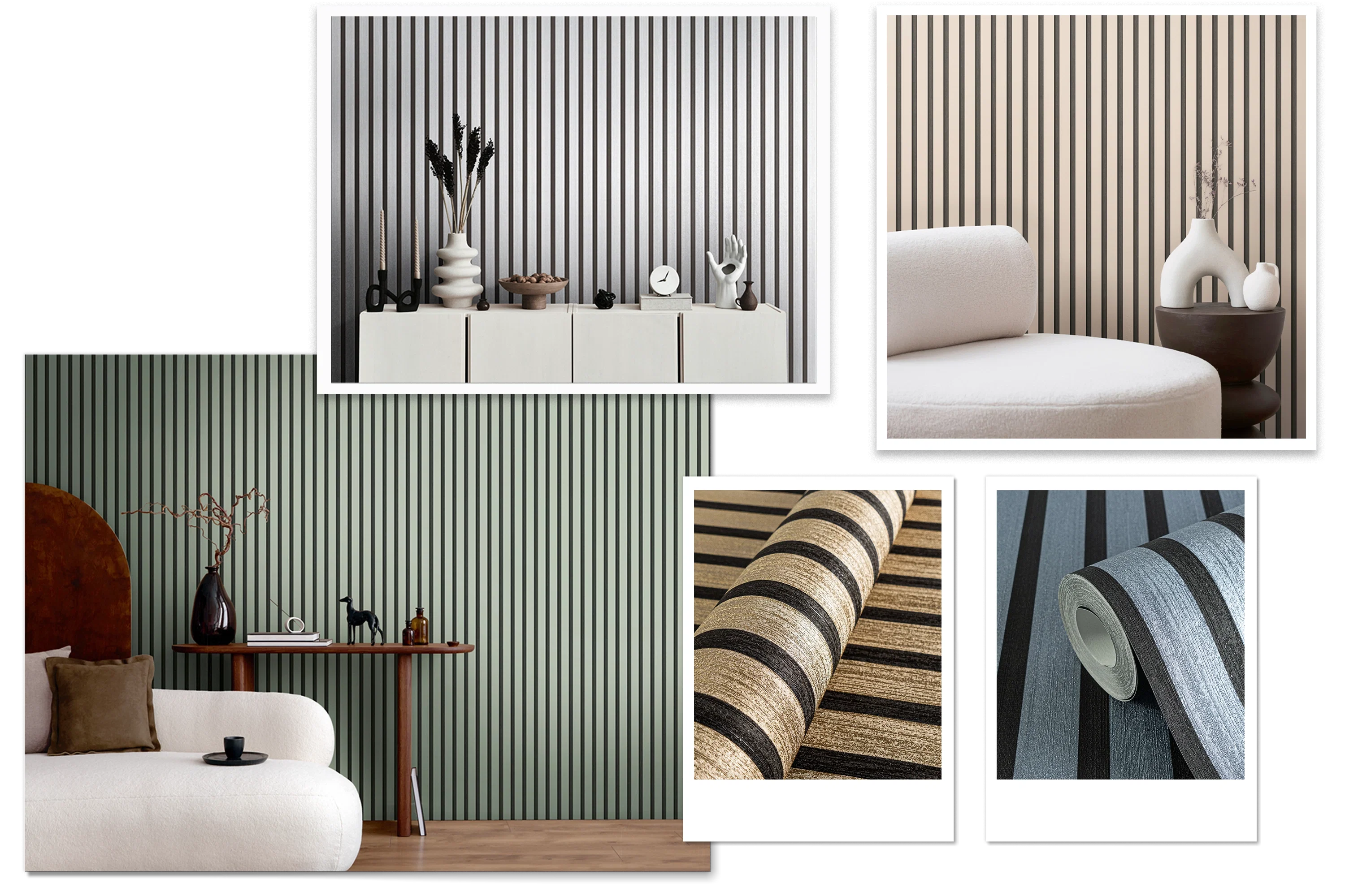 Akustik Paneele als Vliestapete - Holz Streifenoptik im zeitlosen Trenddesign – Grau