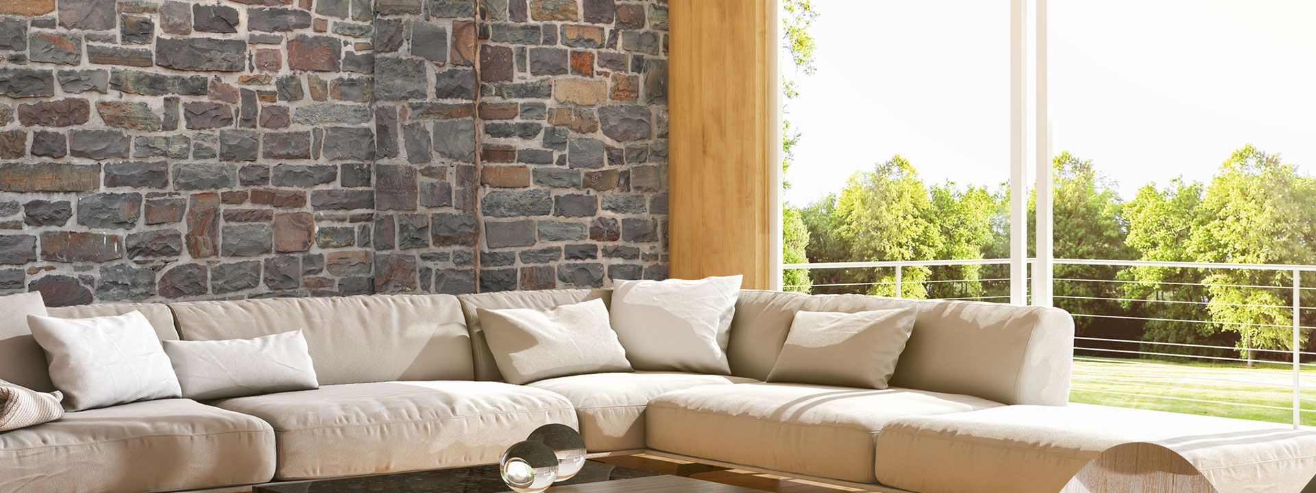 Im Wohnzimmer und vor allem hinter dem Fernseher oder Sofa sind Steinwände besonders beliebt.