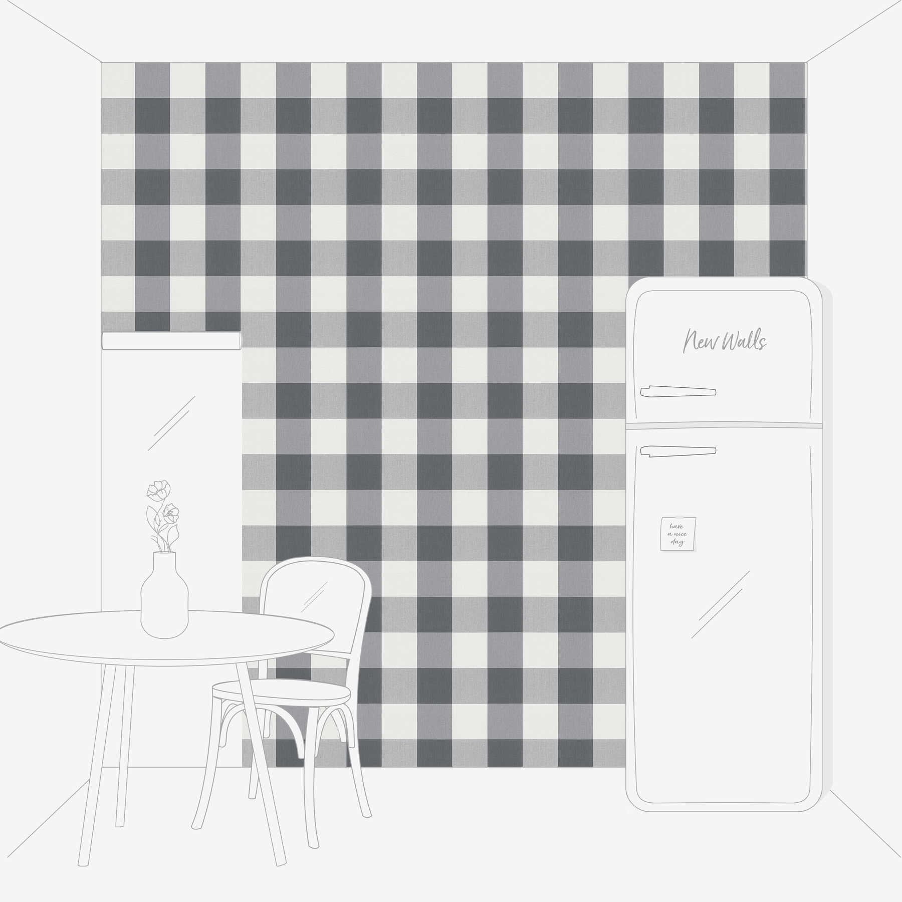 Die karierte Tapete im übergroßen Vichy-Muster sorgt für einen Hingucker an der Wand und passt zum trendigen Landhausstil. Das neutrale grau der Tapete sorgt trotz auffälligem Muster für ein harmonisches Wandbild, dass sich nach Herzenslust mit Farben und Mustern kombinieren lässt. Egal ob im in der Küche mit klassischer Farm House Einrichtung, im Wohnzimmer zur niedlichen Blümchen-Tapete oder im Arbeitszimmer für einen modernen und einladenden Look, die gestreifte Tapete passt zu deinem Stil.