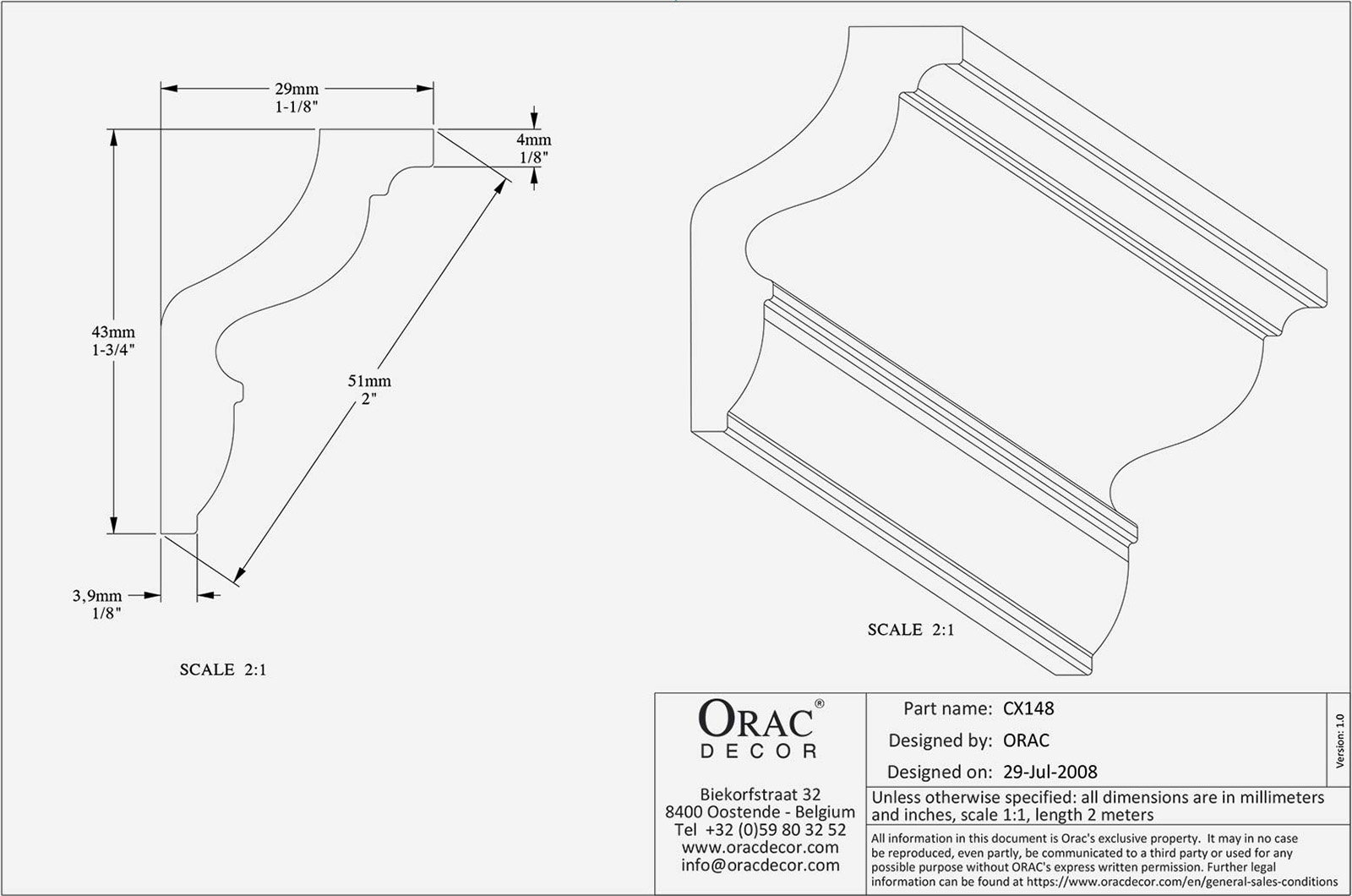Die traditionelle Leiste, die mit mehreren Cyma-recta-Kurven gestaltet ist, ermöglicht einen idealen Übergang zwischen deiner Wand und Decke.