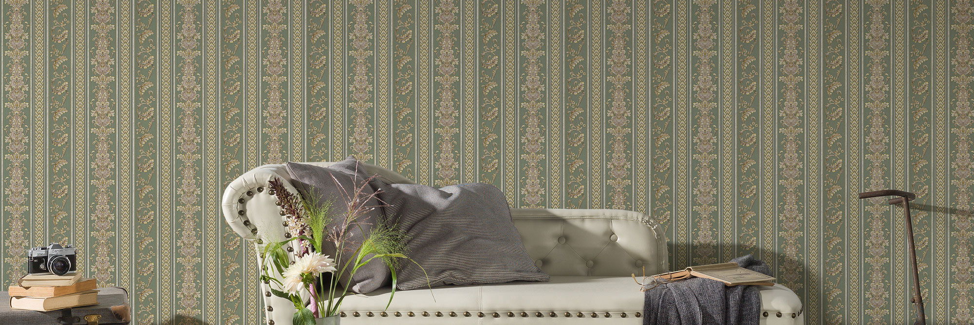 Tapete opulentes Streifen Design mit Ornamenten – Creme, Grau