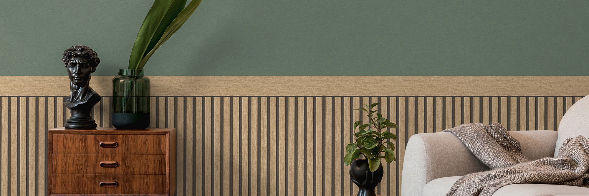 Holztapete im Akustikpaneel-Optik – Beige, Weiß