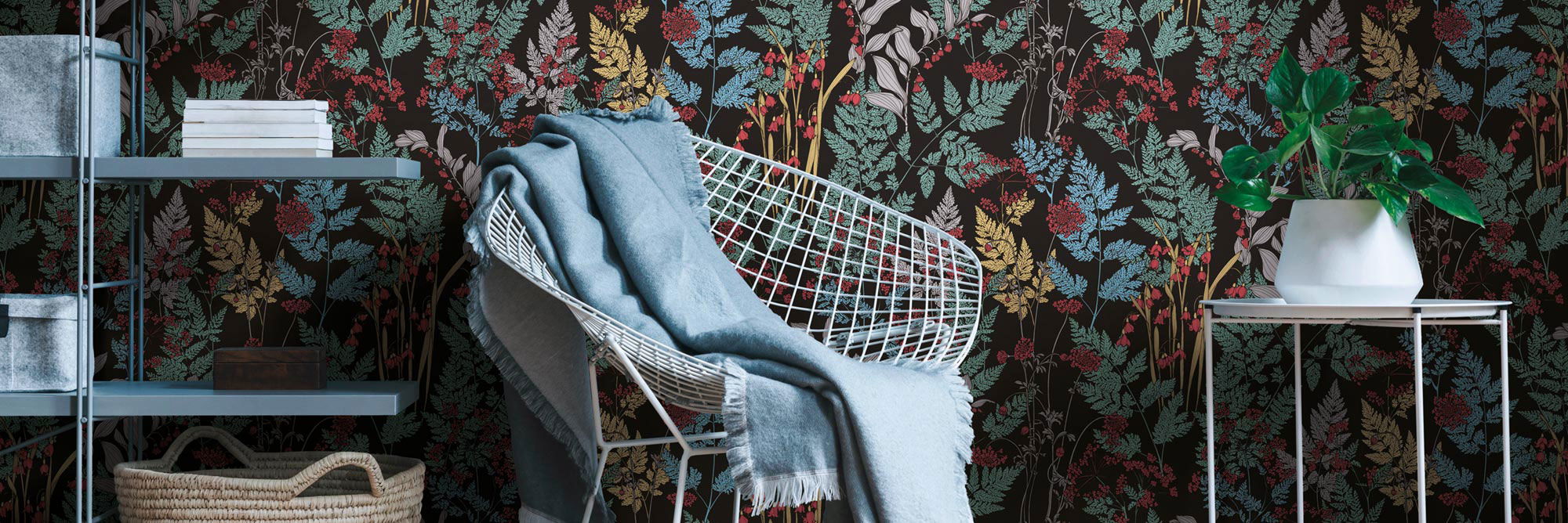 Florale Tapete Natur Design Scandinavian Print – Bunt, Grün, Weiß