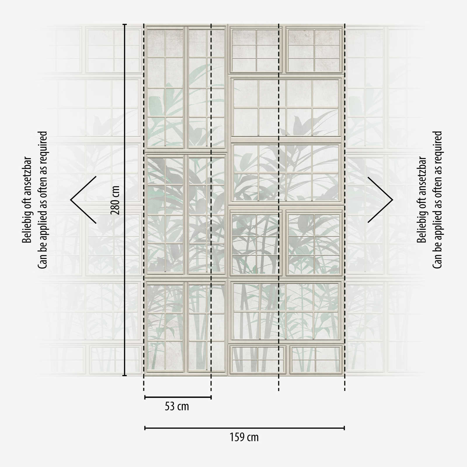 Loft Fensterfront 3D Vliestapete mit dezenter Pflanzen Silhouette und großflächiger Musterwiederholung – Creme, Beige, Grün