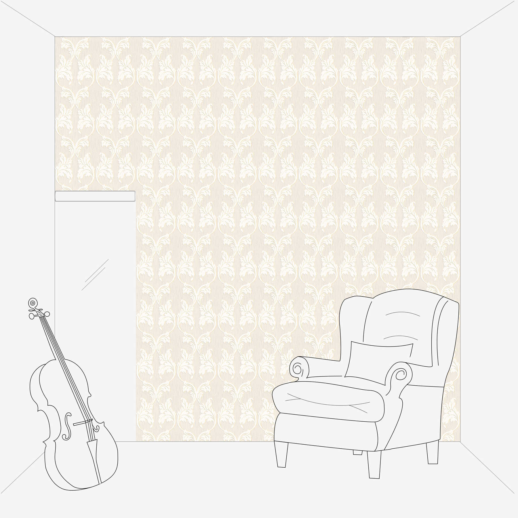 Premium Textiltapete mit Ornament Ranken – Beige, Creme, Gold