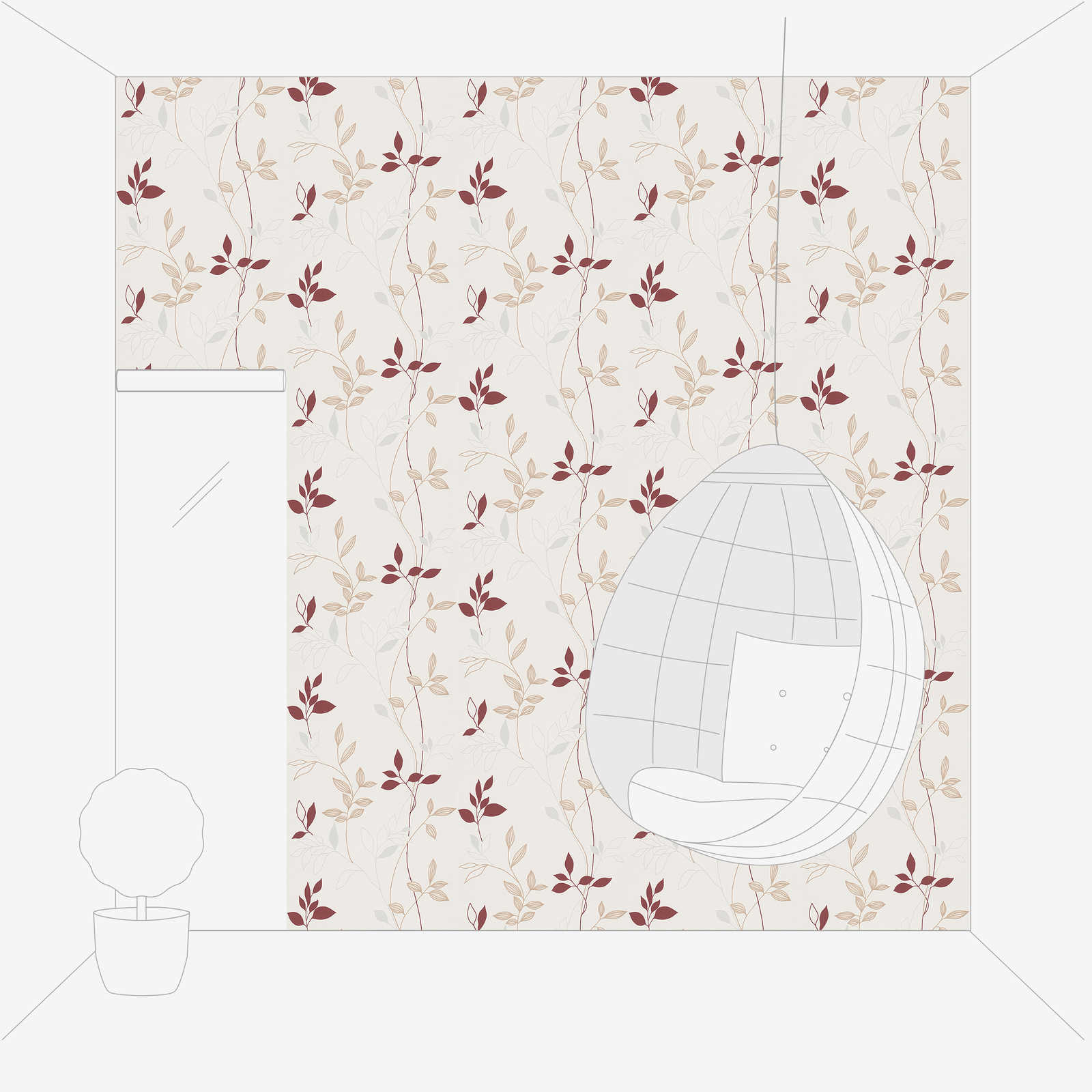 Tapete Blätter Muster strukturiert, farbige Akzente – Rot, Creme