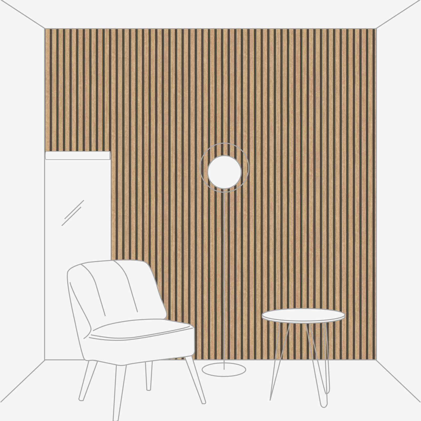 Tapete Holzoptik mit Paneel-Muster – Beige, Braun