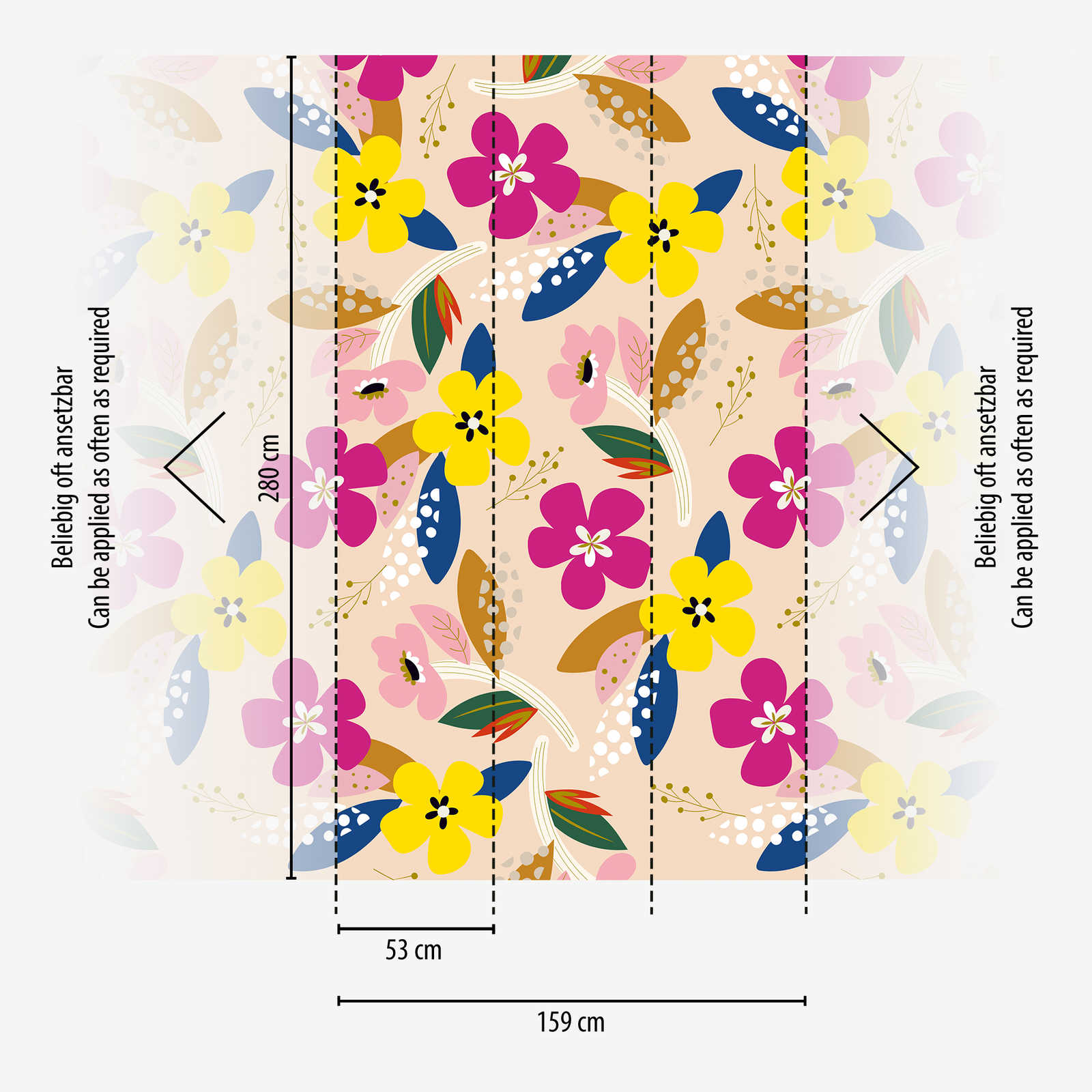 Tapete mit buntem Blumenmuster in kräftigen Farben – Bunt, Beige, Gelb