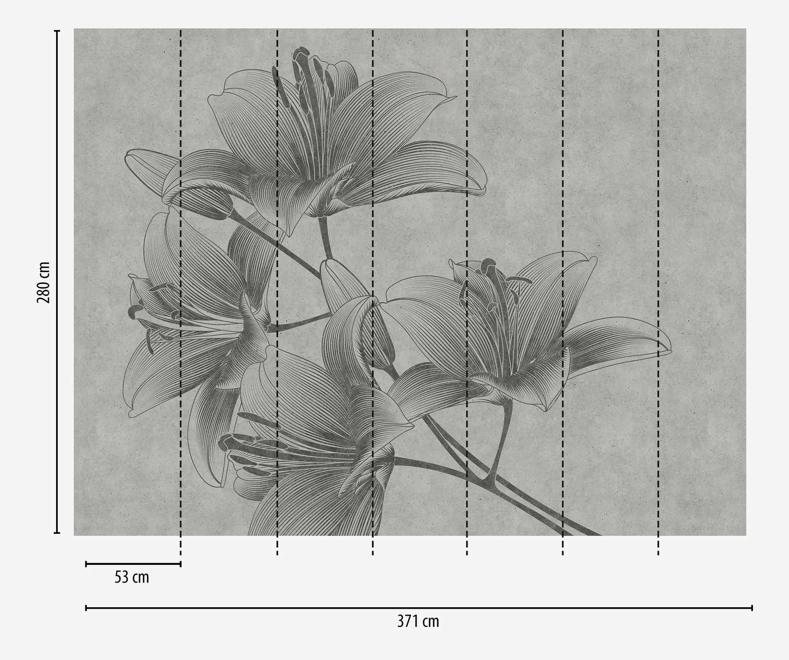 Tapeten-Neuheit | Graue Blumen-Tapete Lilien im Line Art Stil