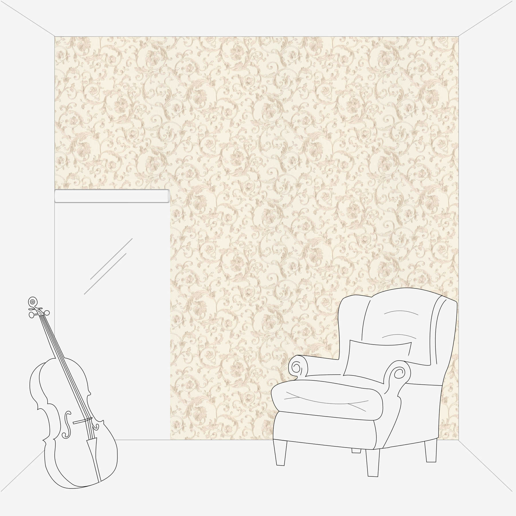 VERSACE Tapete mit Metallic Ranken & Blüten – Creme