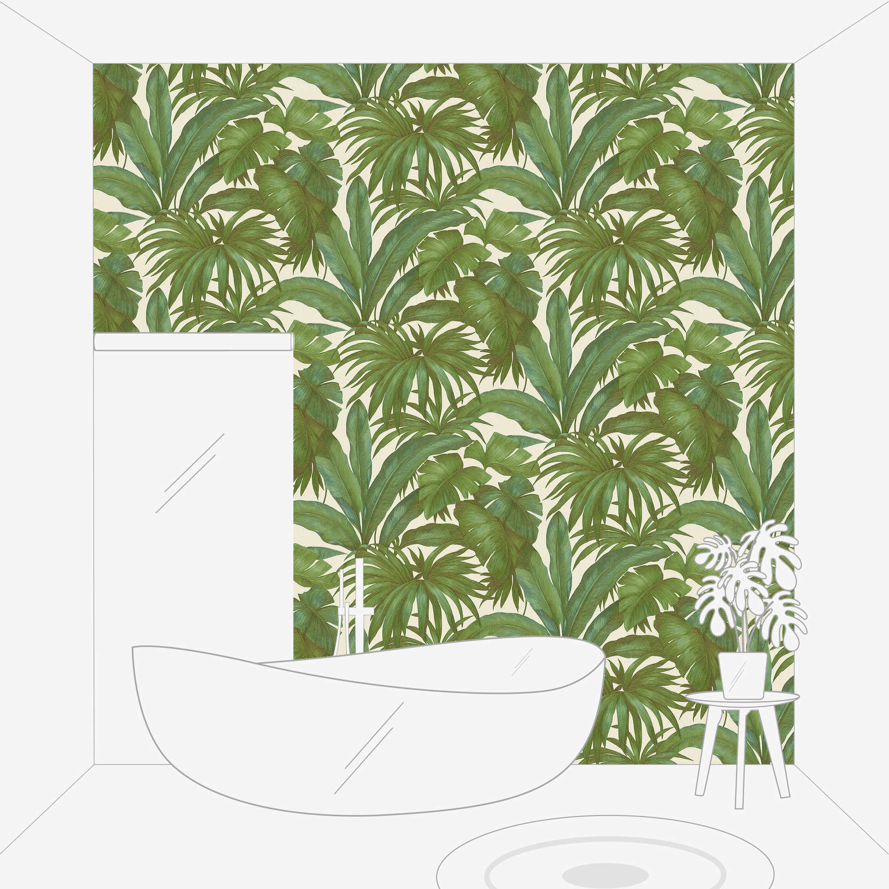 VERSACE Tapete Palmen Motiv – Beige, Grün, Metallic