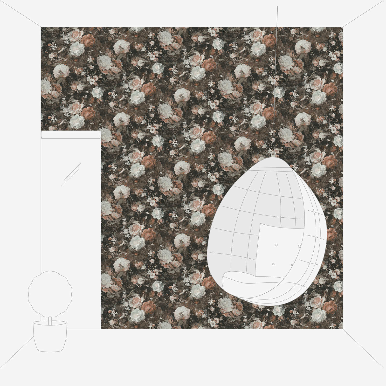 Vintage Blumentapete Klassik Rosen-Muster – Creme, Braun