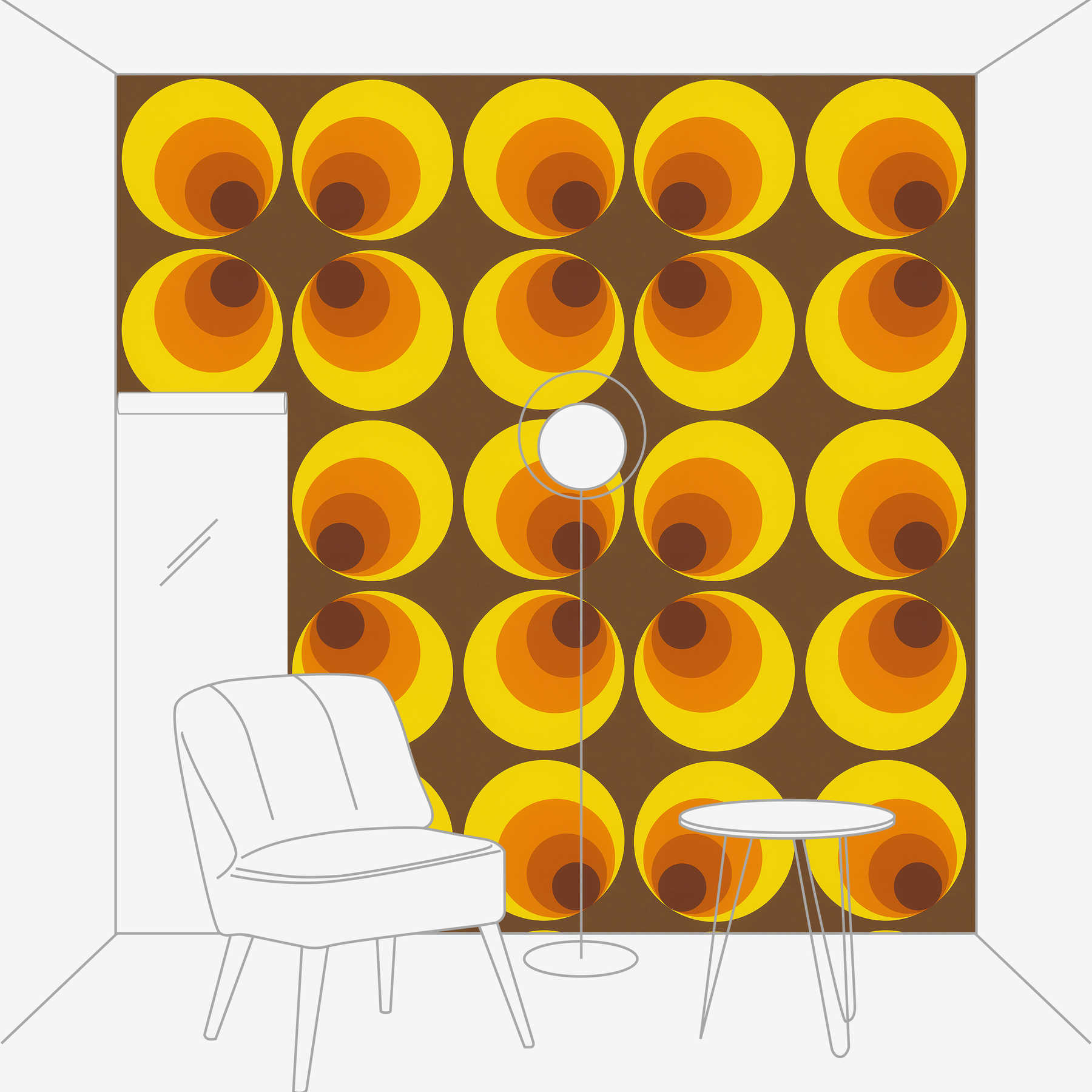 Vintage Tapete mit Retro Design – Braun, Gelb, Orange