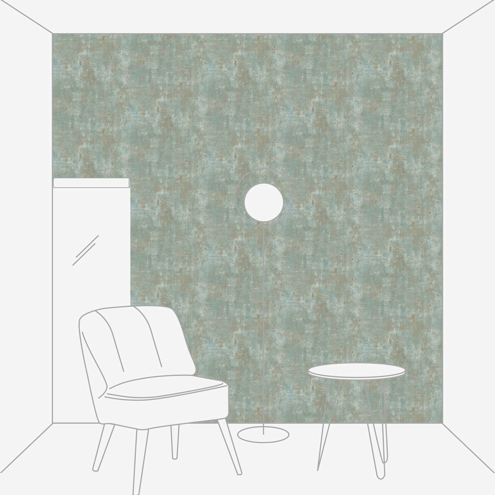Vliestapete in Rostoptik mit Akzenten – Grün, Blau, Gold