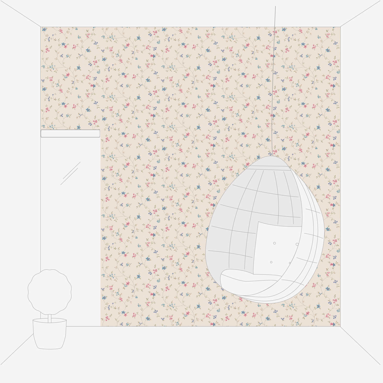 Vliestapete mit floralen Blumenranken – Creme, Grün, Rosa