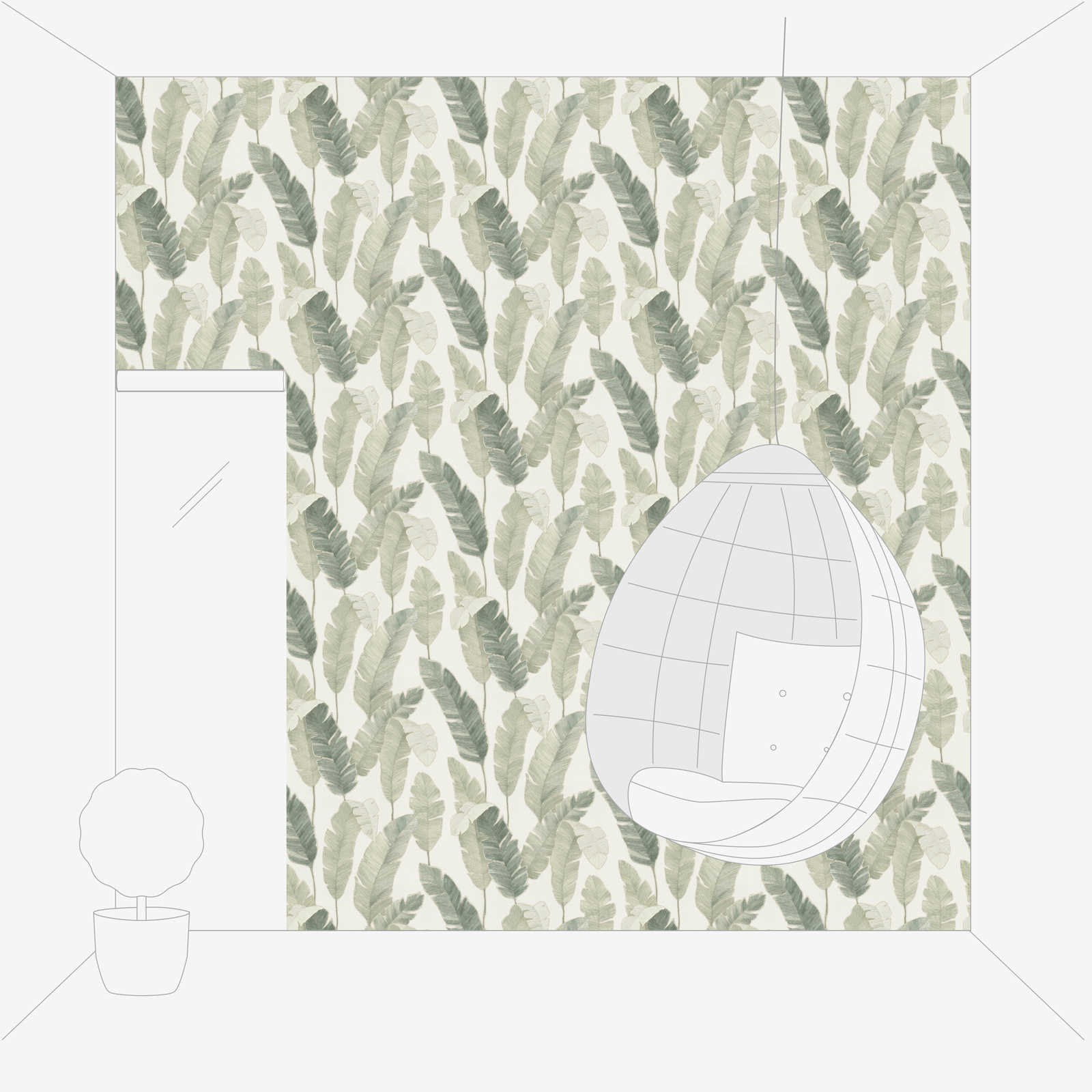Vliestapete mit Palmenblättern in heller Farbe – Weiß, Grün, Blau