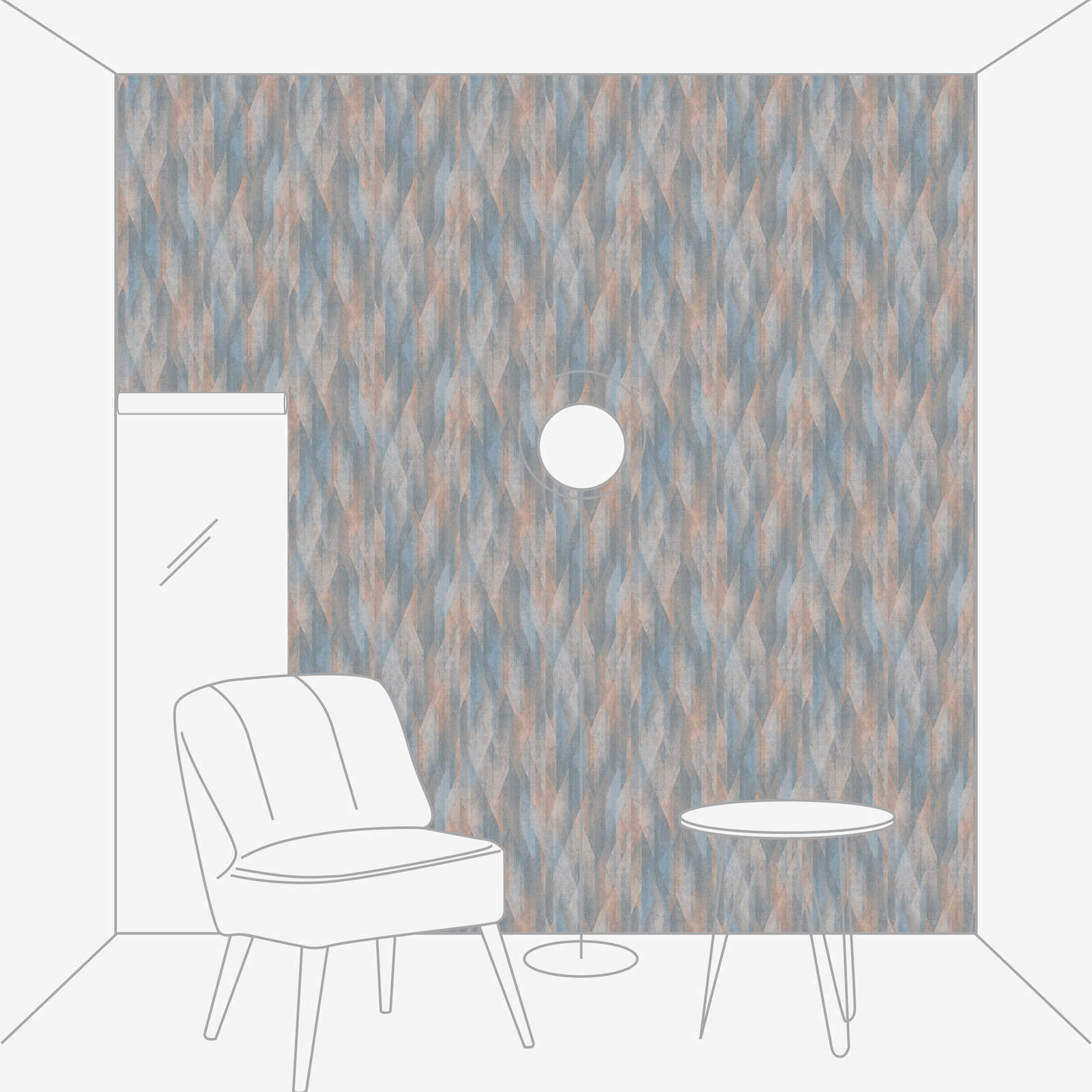 Vliestapete mit Vintage-Rautenmuster – Blau, Beige