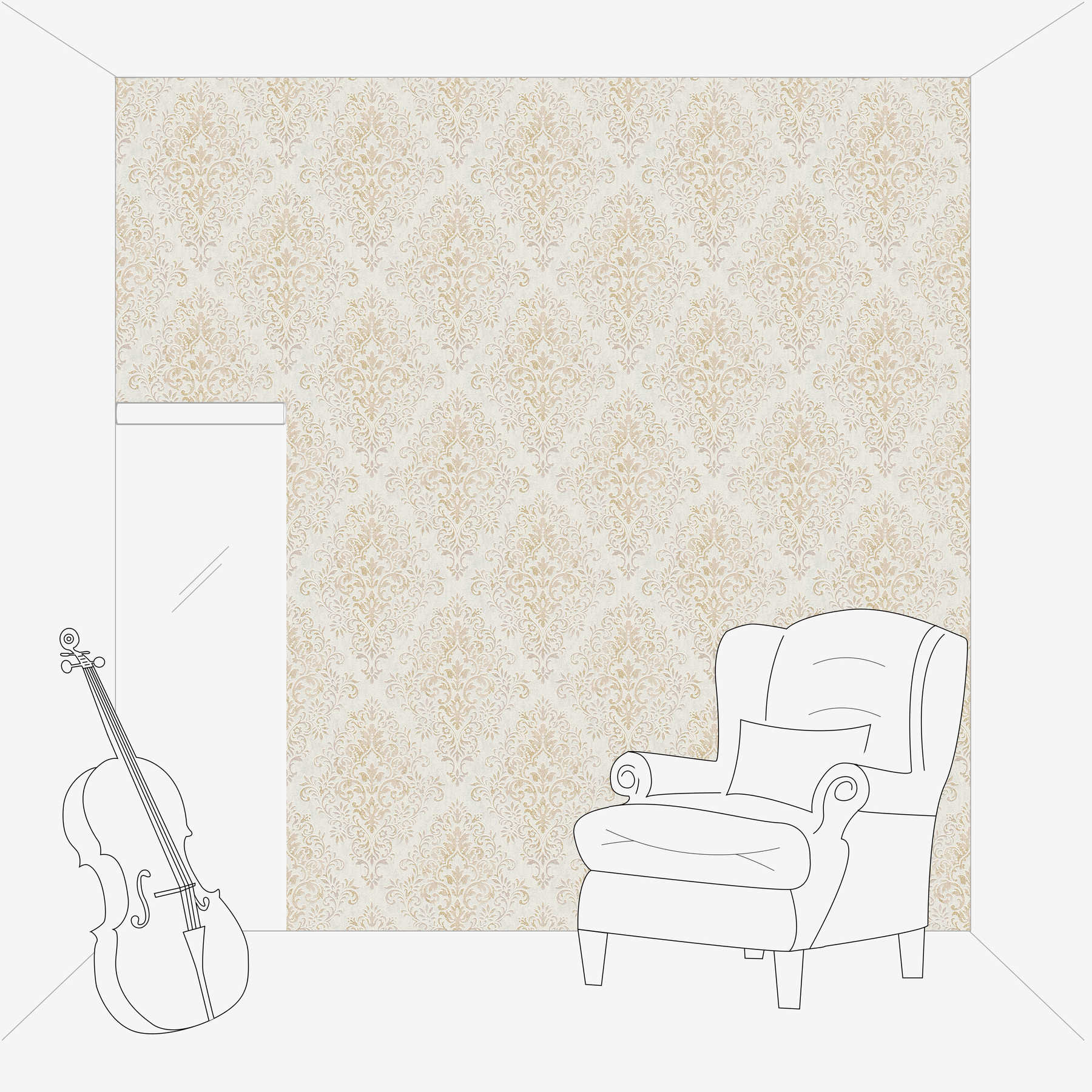 Vliestapete Ornamente mit Gold-Akzent & Used Look – Beige, Braun, Metallic