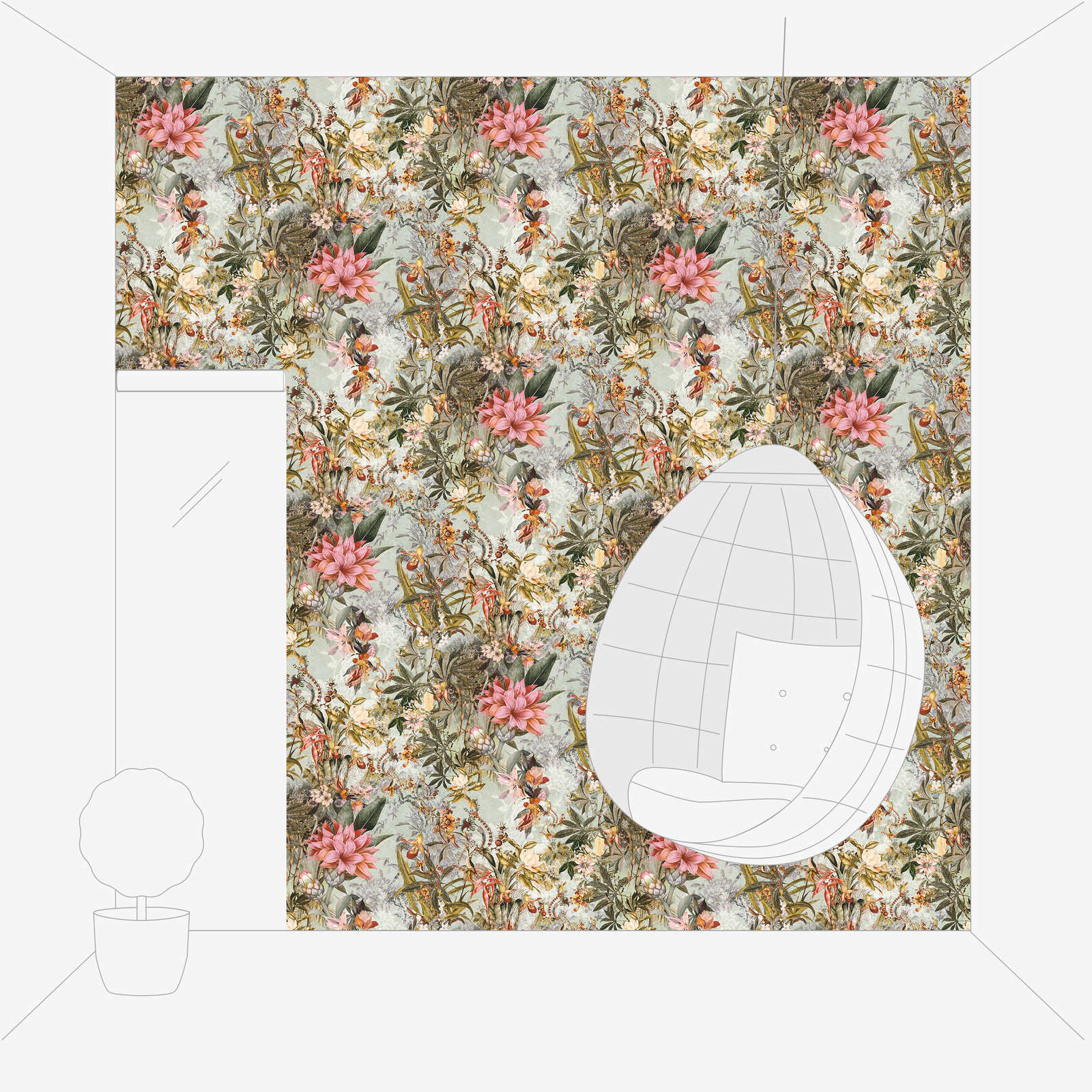 Vliestapete Vintage Dschungel Muster – Grün, Rosa